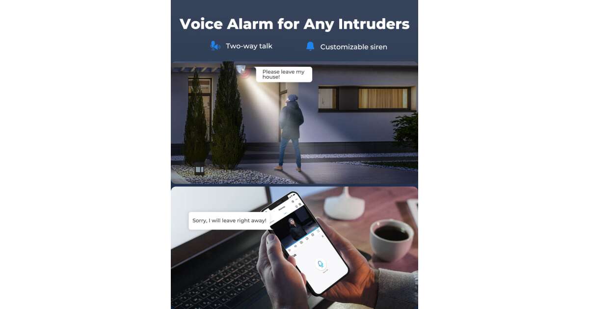 - Dwukierunkowa komunikacja: 🗣️ Porozmawiaj z nieproszonymi gośćmi za pomocą wbudowanego mikrofonu i głośnika.