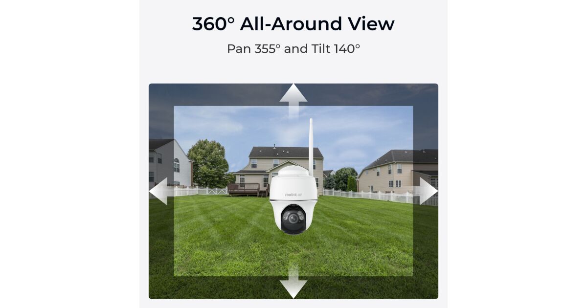 Kamera monitorująca panel słoneczny Reolink Argus PT B440, rozdzielczość 4K / 8MP, WIFI, wykrywanie osób/pojazdów, widok 360 stopni opis