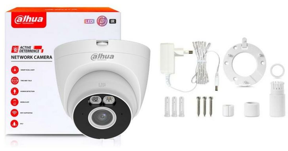 Zewnętrzna kamera sieciowa Dahua 4 MP, Eyeball, IP, podwójne oświetlenie, obiektyw o stałej ogniskowej 2,8 mm, aktywne odstraszanie, Wi-Fi, zapis na karcie micro SD, seria Entry, T4A-PV opis