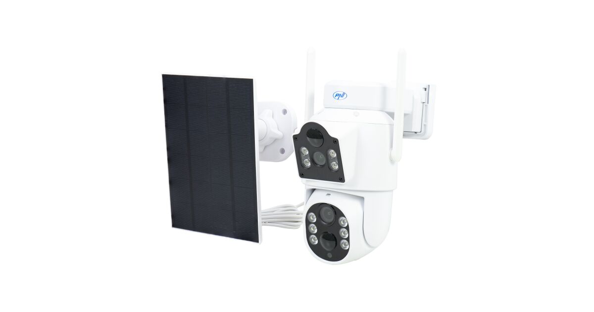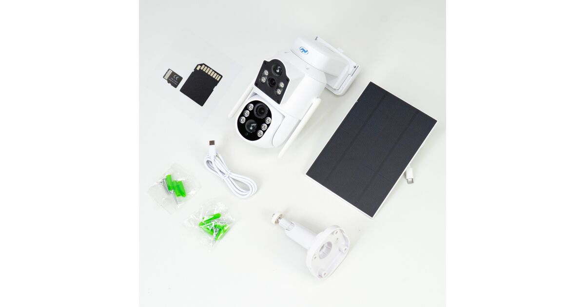 Kamera zewnętrzna PNI IP792 Dual Lens z panelem słonecznym ☀️: Rozdzielczość 2MP+2MP, karta microSD 128GB dla pełnego bezpieczeństwa!