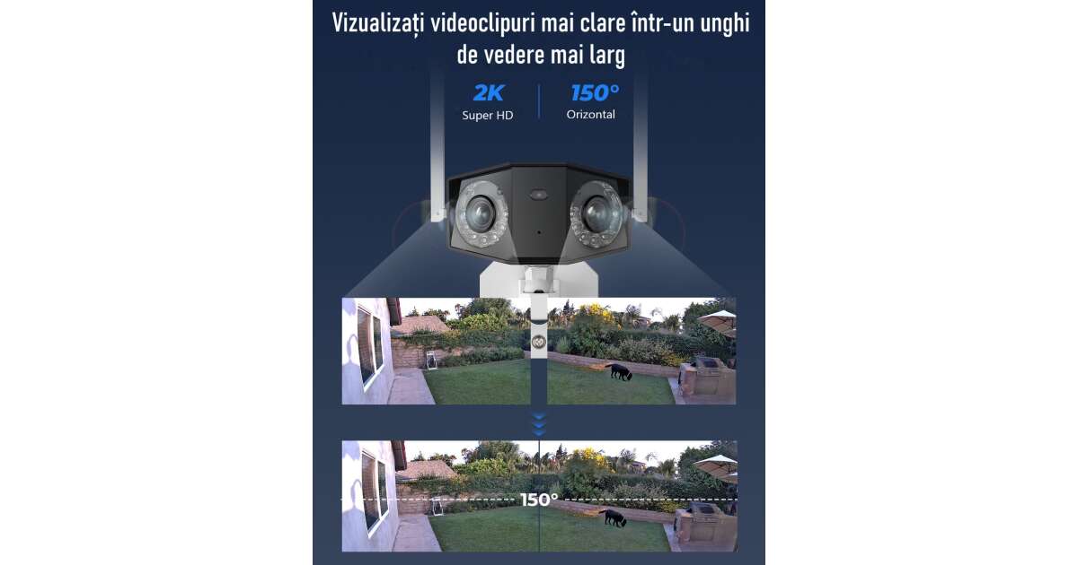 - Panorama 180°: Dwa obiektywy zapewniają obraz bez przerw.