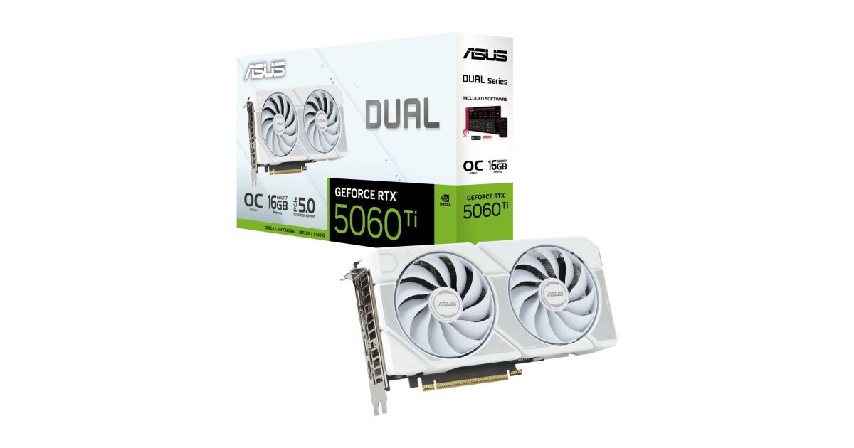 ASUS Dual GeForce RTX 5060 Ti 16GB GDDR7 White OC Edition PCIe 5.0 DLSS 4 HDMI 2.1b DisplayPort 2.1b 142108351