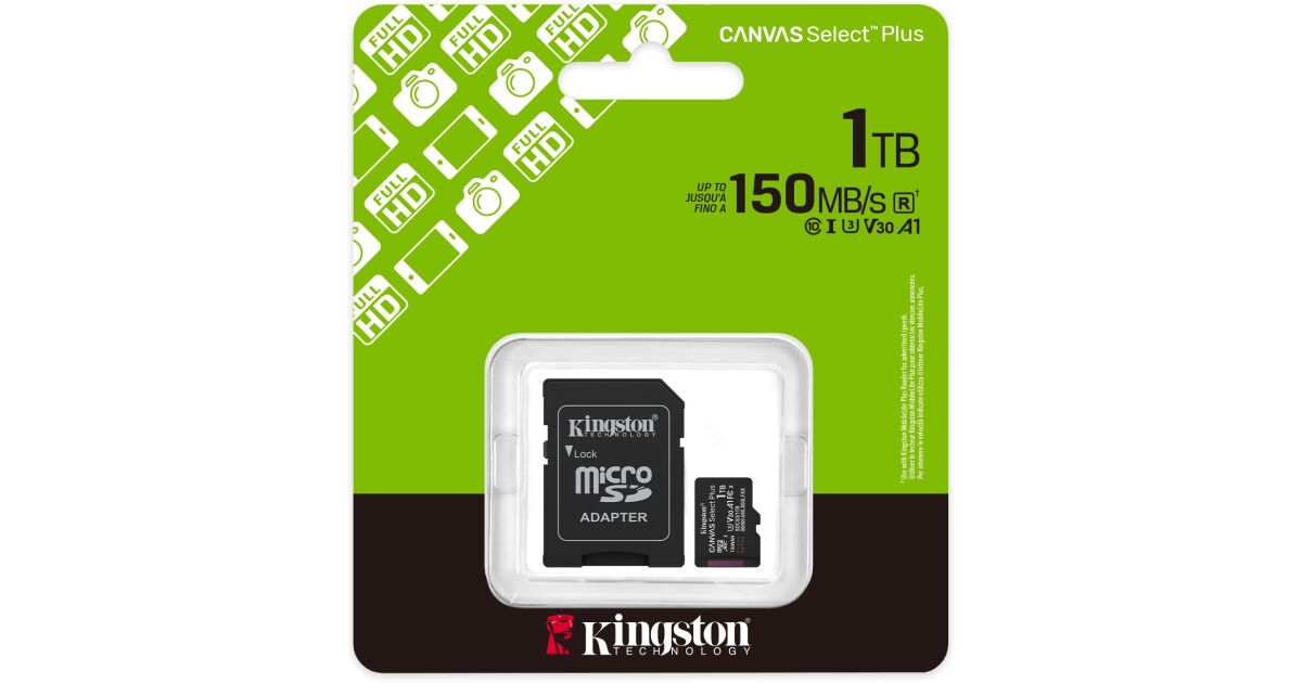 KINGSTON 1TB microSDXC Canvas Select Plus Gen3 150MB/s A1 Card + Adapter opis