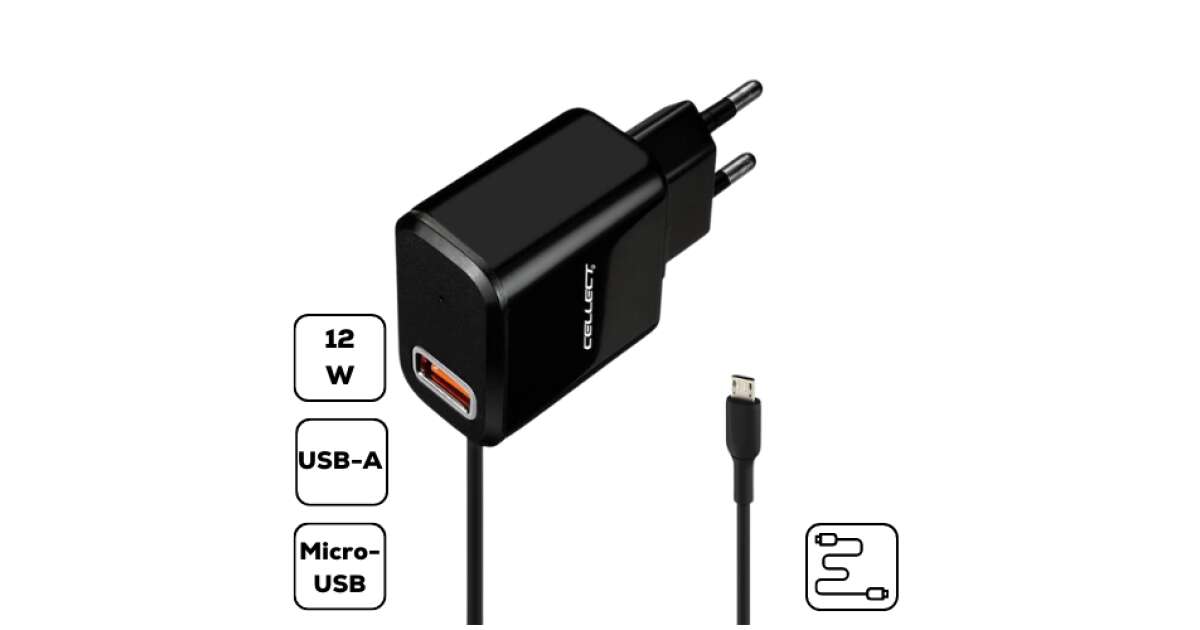 Ta ładowarka sieciowa Cellect może ładować dwa urządzenia jednocześnie dzięki wyjściom Micro-USB i USB-A. Idealna do telefonów, tabletów, powerbanków i innych urządzeń elektronicznych. Dzięki szybkiemu ładowaniu 2.4A możesz szybko naładować swoje urządzenia, aby zawsze były gotowe do użycia.
