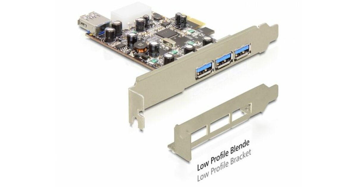 Karta rozszerzeń Delock PCI Express USB 3.0: 3 zewnętrzne + 1 wewnętrzne porty USB ➕