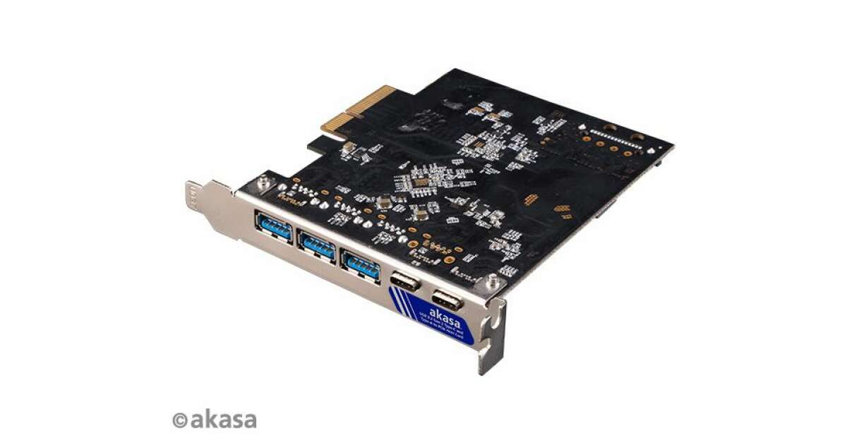 Karta rozszerzeń Akasa PCI-E USB 3.2 Gen 2: 2x Type-C + 3x Type-A ⚡