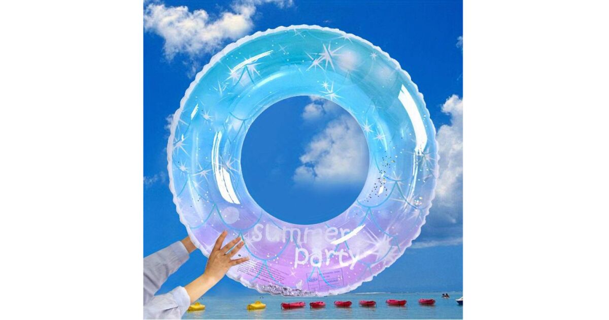 Modne, półprzezroczyste koło dmuchane z mieniącym się konfetti w środku to utrzymujący się hit lata! Nie ma osoby, która nie zwróciłaby uwagi na Waszego dmuchańca!