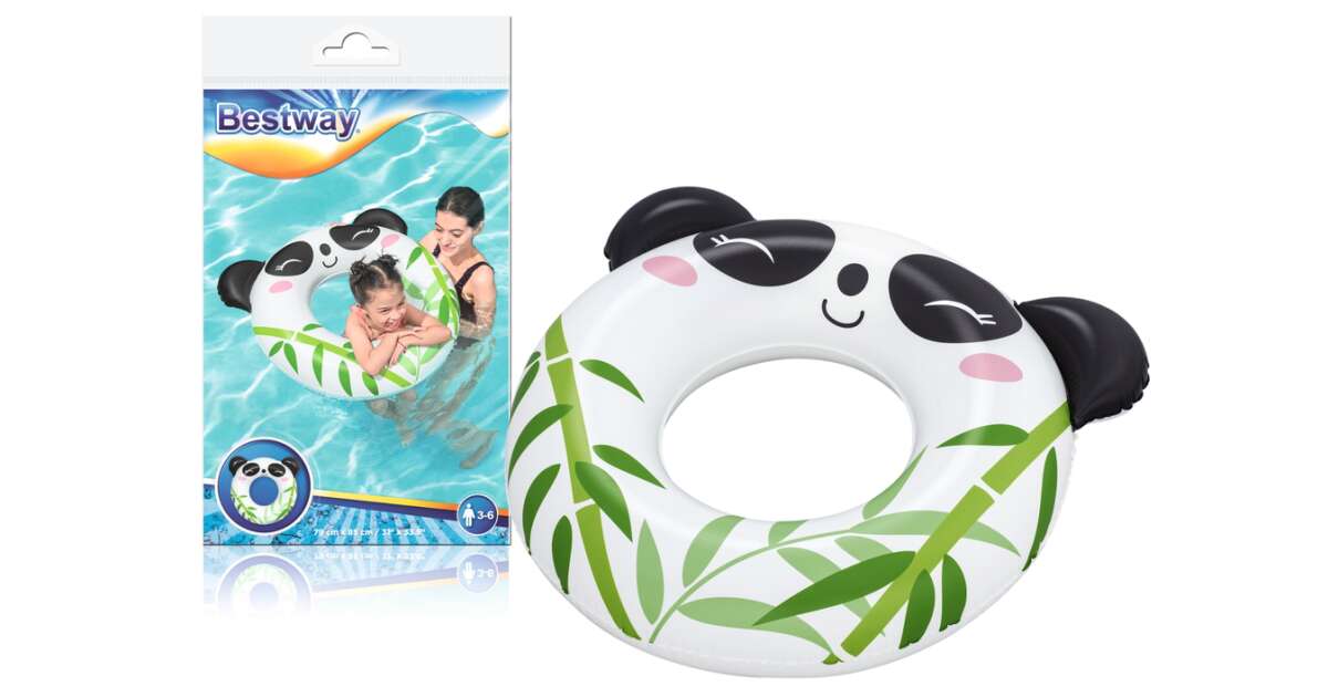 Koło Do Pływania Panda 79 x 85 cm Bestway 36351 Wspaniałym dodatkiem podczas wakacyjnego wypoczynku niezależnie od tego czy będzie się on odbywał nad morzem czy w basenie jest dmuchane koło plażowe. Jesteśmy pewni, że w prosty sposób zachęci Twoje dziecko do wodnych aktywności na świeżym powietrzu oraz urozmaici jego zabawy. Kolorowe motywy sprawiają, że kolo wyróżnia się, a dziecko korzystające z niego staje się bardziej widoczne. Koło jest wytworzone z wytrzymałego materiału PCV odpornego na uszkodzenia i jest przeznaczone dla dzieci w wieku od 3 do 6 lat. Dane techniczne: - średnica 76 cm - wytrzymały materiał PVC - ciekawa grafika z pandą - łatka naprawcza dołączona do zestawu - wiek od 3 do 6 lat Waga: 0,25 kg Wymiary opakowania: 24 cm x 16 cm x 4 cm