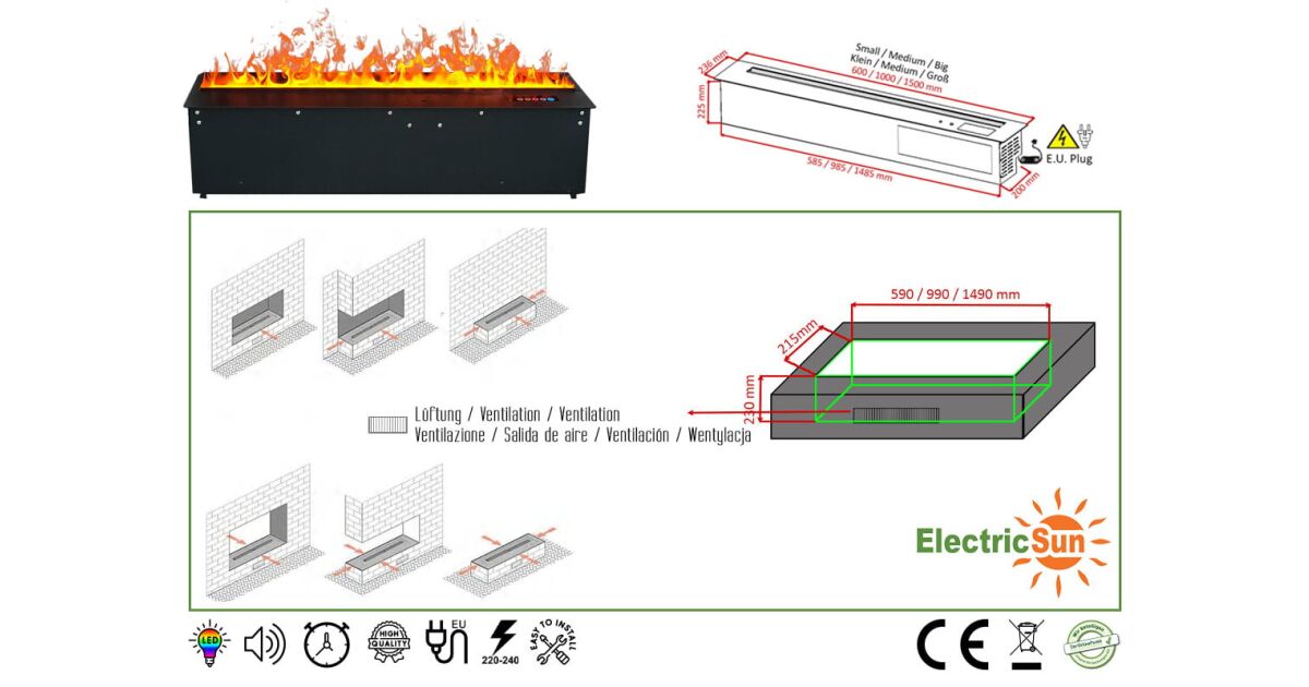Wprowadź przytulną atmosferę do swojego domu dzięki elektrycznemu kominkowi 3D na parę wodną ElectricSun MISTique! Ten kominek do zabudowy tworzy realistyczny efekt płomieni, którym można sterować za pomocą aplikacji na telefon. To idealny wybór do mieszkań, domów, hoteli i restauracji.