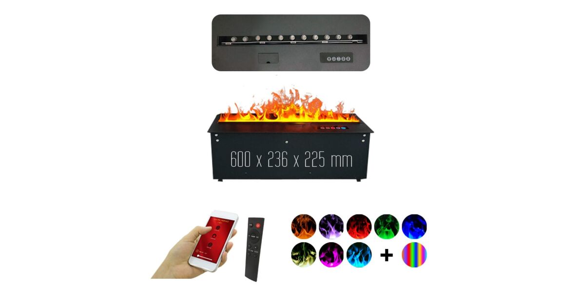 Wkład kominek elektryczny 3D do zabudowy z parą wodną, Led, z aplikacją, ElectricSun MISTique mały 60 cm