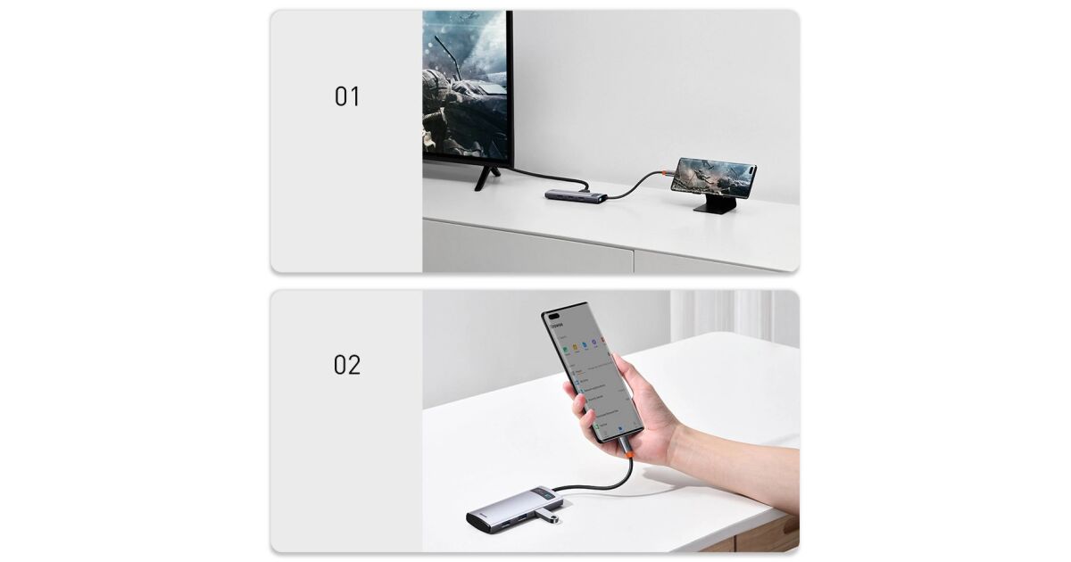 Ten Baseus 5 w 1 USB-C hub to idealne rozwiązanie do rozszerzenia możliwości podłączania laptopa, tabletu lub telefonu. Po prostu podłącz go przez port USB-C, a uzyskasz dostęp do dodatkowych portów.