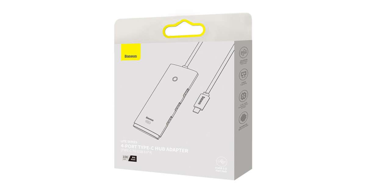Baseus Lite Series Hub 4w1 USB-C 4x USB 3.0 + USB-C, 1 m (czarny) opis