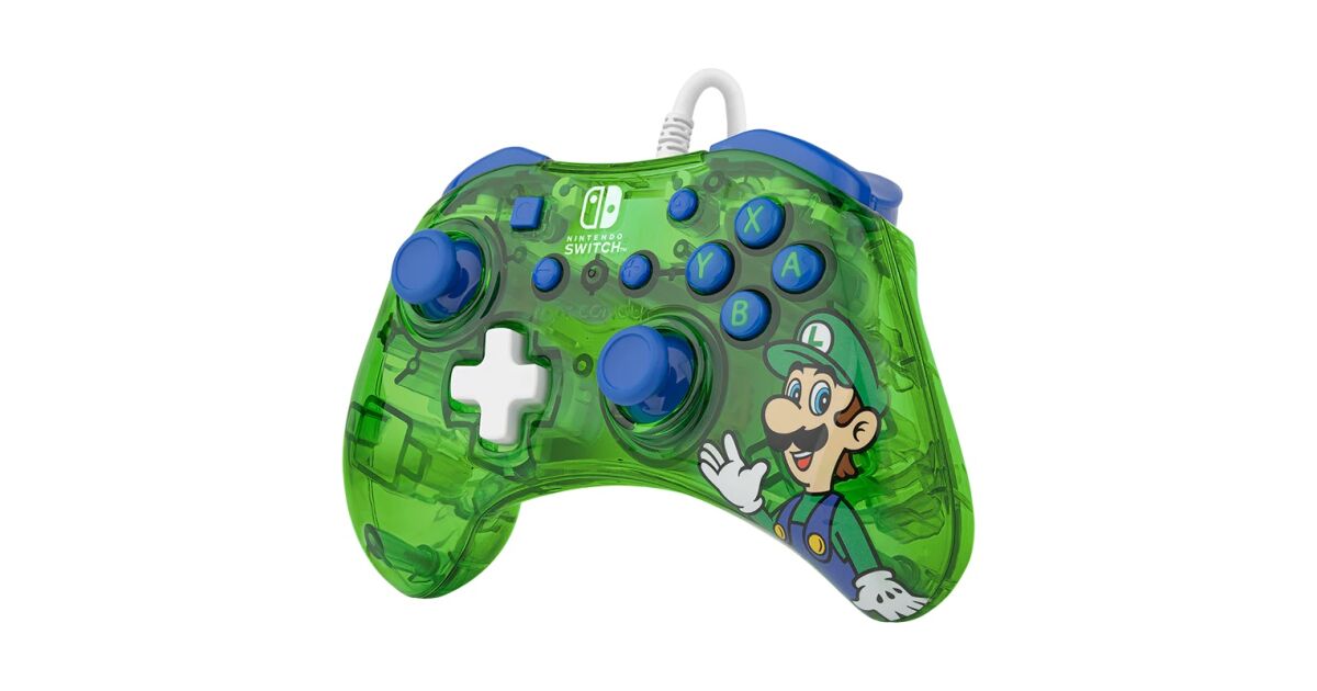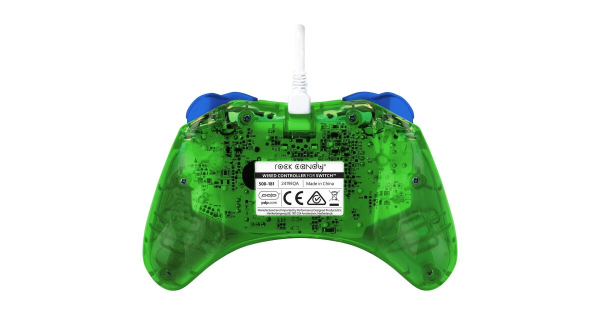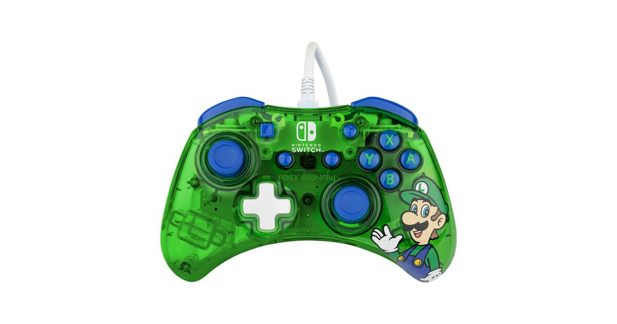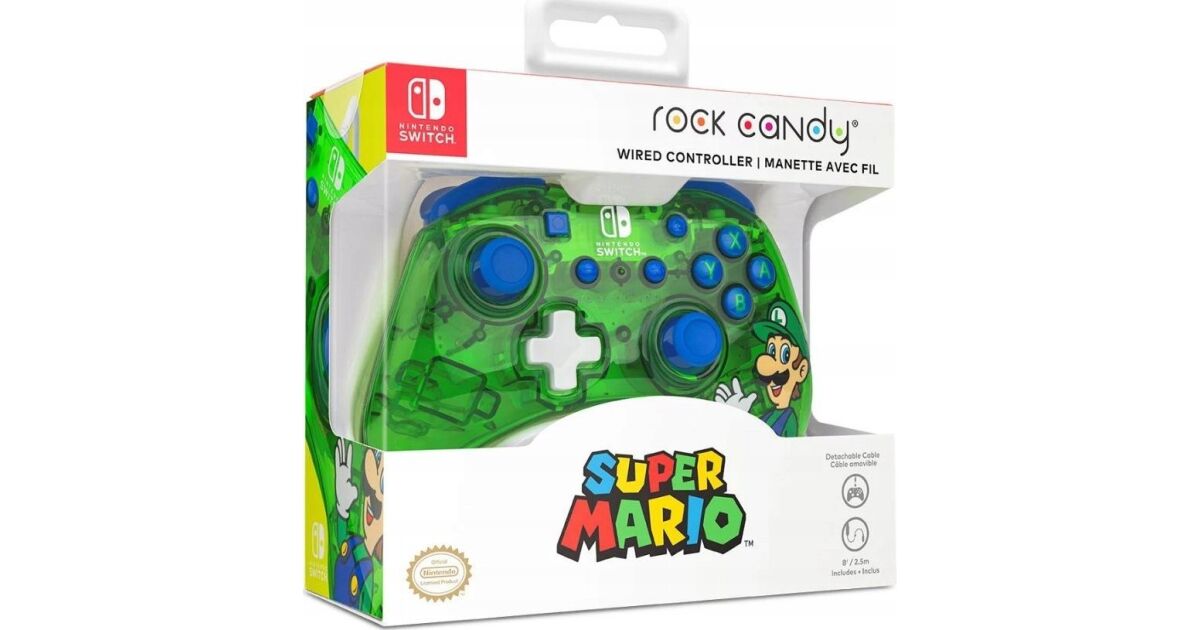 PDP Rock Candy: Luigi Lime Niebieski, Zielony, Półprzezroczysty USB Gamepad Analogowa/Cyfrowa Nintendo Switch, Nintendo Switch Lite, Nintendo Switch OLED