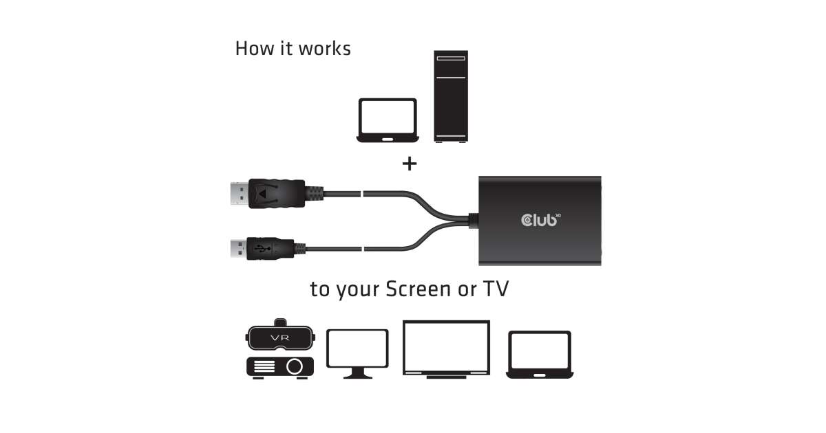 Ten kompaktowy adapter CLUB3D DisplayPort™ 1.2 - Dual Link DVI-D pozwala łatwo podłączyć urządzenie z wejściem DisplayPort (np. laptop, komputer) do monitora lub telewizora z wejściem Dual Link DVI-D. Ciesz się niesamowitą jakością obrazu nawet w rozdzielczości 4K@30Hz! ✨