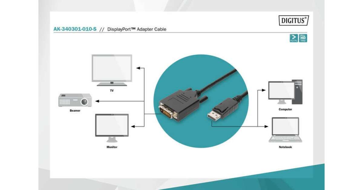 DIGITUS AK-340301-010-S 1m /s1x DisplayPort 1x DVI-D opis