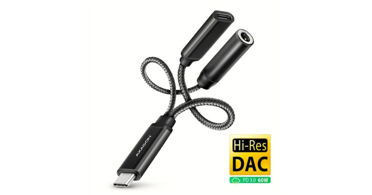 AXAGON ADA-HCPD Hi-Res AUDIO ADAPTER DACAXAGON ADA-HCPD Hi-Res AUDIO ADAPTER DAC jest idealnym dodatkiem do telefonu, tabletu, laptopa lub komputera stacjonarnego ze złączem USB-C, który nie ma na swoim wyposażeniu gniazda audio 3.5 mm. Dużą zaletą jest zintegrowane złącze Power Delivery, które umożliwia podłączenie ładowarki i tym samym zapewnia możliwość zasilania podłączonego telefonu. Adapter składa się z wysokiej jakości konwertera DAC, który oferuje 384 kHz / 32-bitowe próbkowanie podczas odtwarzania, co zapewnia doskonałą jakość dźwięku.Złącze USB-C zarezerwowane jest wyłącznie do zasilania i jednoczesnego ładowania laptopów z wykorzystaniem technologii Power Delivery 3.0 o mocy do 60W. Podłącz odpowiednią ładowarkę do złącza i podłącz soundbar do telefonu. Zapomnij o ciągłym odłączaniu słuchawek w celu naładowania, ciesz się nieprzerwaną zabawą słuchając muzyki, oglądając filmy lub grając w gry.Adapter jest optymalnym rozwiązaniem w przypadku telefonów komórkowych i tabletów, które nie są już wyposażone w gniazdo słuchawkowe i posiadają wyłącznie port USB-C. Do takich urządzeń należą, m.in. produkty firm Samsung, Apple (iPhone 15 i nowsze / iPad), Xiaomi, Honor oraz Huawei.Ta karta dźwiękowa doskonale sprawdza się w przypadku bezstratnych formatów, takich jak FLAC, WMA, WAV, APE, AAC lub ALAC itp. Słuchanie muzyki w najwyższej możliwej jakości jest dostępne za pośrednictwem kont premium na platformach, takich jak Spotify, Apple Music, YouTube Music i Amazon Music Unlimited. Adaptera można używać również do bezproblemowego korzystania z popularnych usług streamingowych, takich jak Netflix, Disney+, HBO Max, Amazon Prime lub Apple TV+.Dzięki konwerterowi DAC z ADA-HC możesz cieszyć się muzyką w wyższej jakości niż przy użyciu standardowego wyjścia na słuchawki w laptopie. Konwerter sprawdzi się również jako zamiennik niedziałającej oryginalnej karty dźwiękowej w laptopie, zastępując wejście na słuchawki lub mikrofon. Jego zaletą jest również możliwość podłączenia mikrofonu lub zestawu słuchawkowego i łączenie się z innymi przy użyciu aplikacji, takich jak WhatsApp, Messenger, FaceTime, Skype, Zoom, MS Teams, Google Meet czy Discord. Można go również użyć do podłączenia urządzenia mobilnego do wyjścia AUX w samochodzie.Do podłączenia słuchawek służy 4-biegunowe złącze stereo TRRS z automatycznym wykrywaniem CTIA lub OMTP. Wytrzymałość kabla zapewnia wysokiej jakości nylonowy oplot.Specyfikacja techniczna:Gwarancja producenta: 24 miesiąceDodatkowe informacje: częstotliwość próbkowania 44.1 / 384 kHz analog | rozdzielczość 16 / 24 / 32 bit (PCM) do odtwarzania | odstęp sygnału / szum ≥ 124 dB (Output SNR) pro DAC | zniekształcenie harmoniczne ≤ -95 dB (Output THD+N)Wymiary: 25 x 7 mmKolor: czarnyDługość kabla: 0,1 mRodzaj złącza: USB-C/mini Jack 3,5mm + USB-C