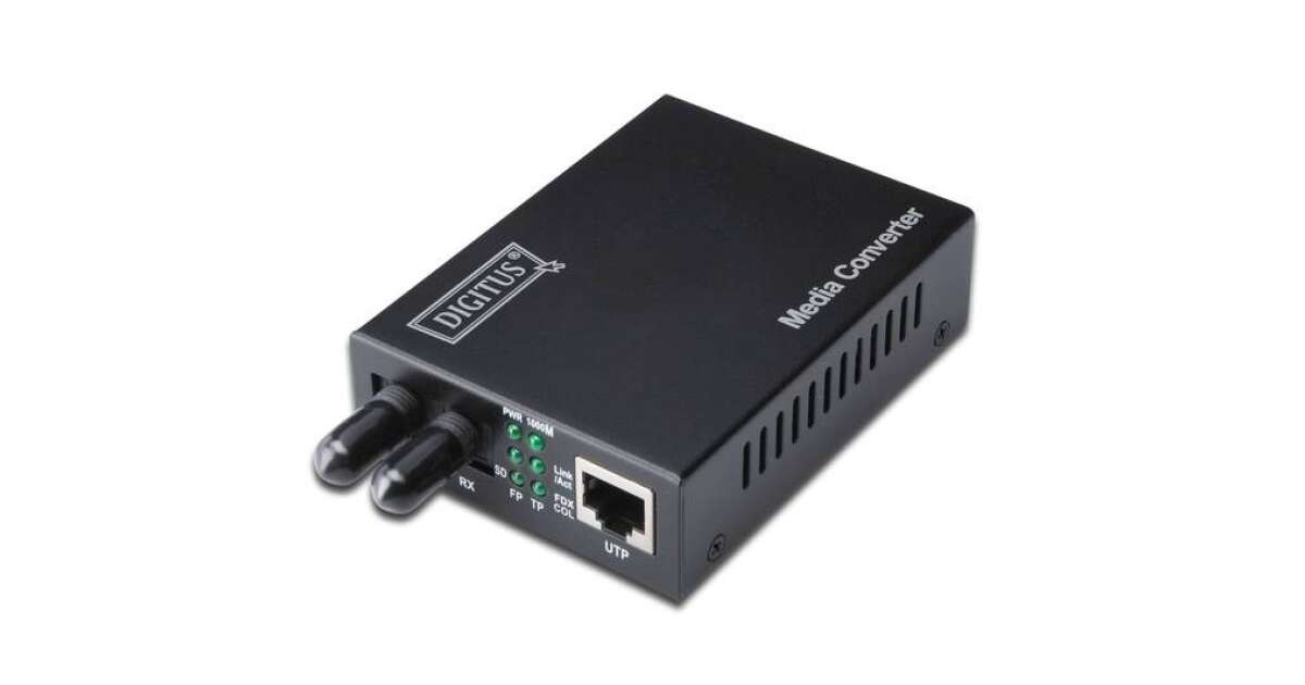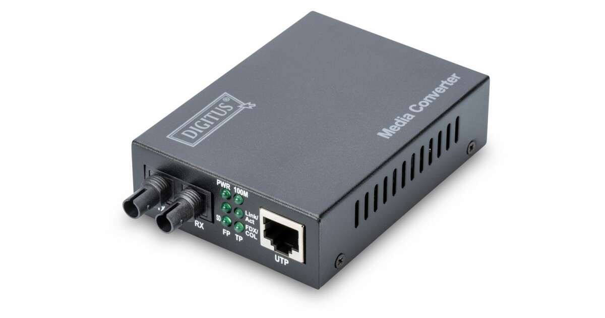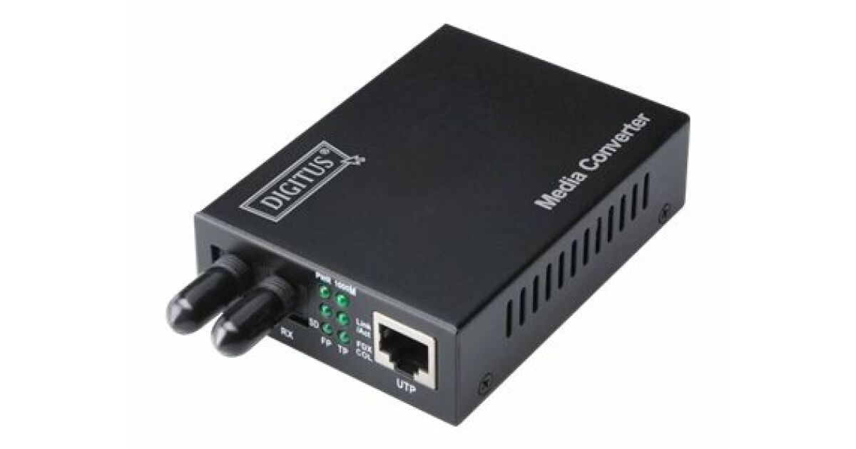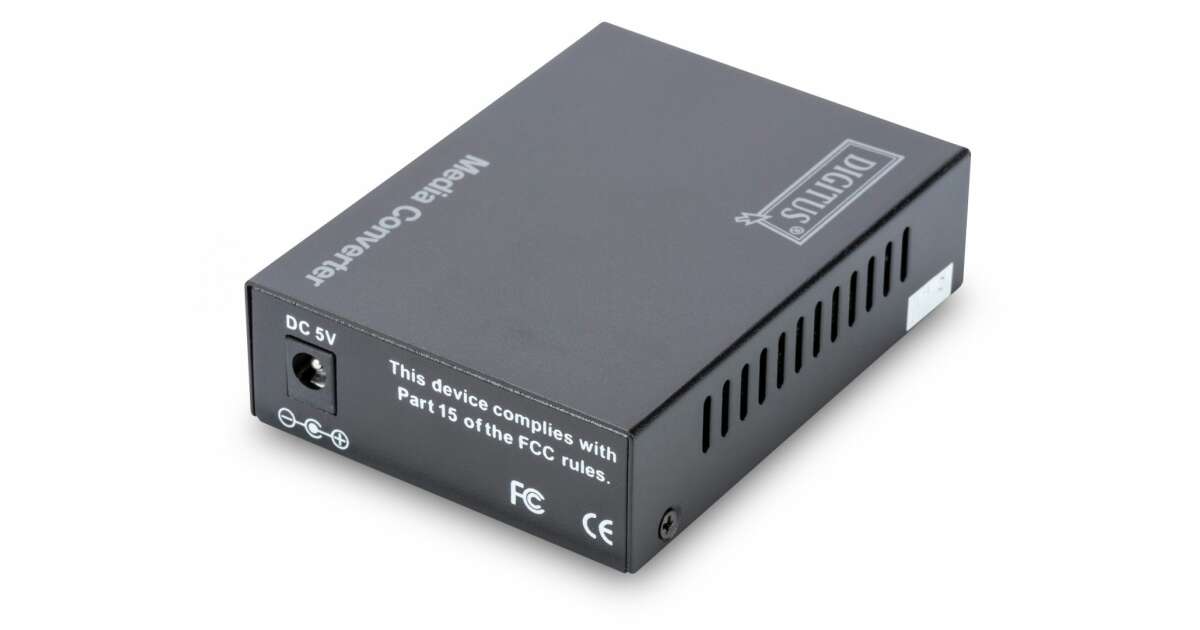 Media Converter firmy DIGITUS są idealnym rozwiązaniem zamiany transmisji sygnałów sieciowych przewodami miedzianymi na światłowodowe. Od tej pory, możliwy jest dostęp do techniki światłowodowej i transmisja sygnałów sieciowych na odległość kilku kilometrów bez potrzeby zmiany całej infrastruktury sieci. Duży asortyment produktów zaspokoi wasze indywidualne potrzeby. Intuicyjna obsługa gwarantuje szybką i łatwą instalację. Funkcja Błąd łącza Przejście umożliwia transmisje bez obaw. Wasz administrator sieci będzie mógł łatwo znaleźć i rozwiązać problemy z siecią. Lata doświadczeń i szeroki asortyment produktów pozwala firmie DIGITUS być niezawodnym partnerem dla waszych sieci. Zmienia nośniki sieci przewodowej w nośniki światłowodowe Wysoka jakość i znakomita niezawodność 10/100Base-TX do 100Base-FX Złącza: 1x RJ45, 1x ST Dupleks Zasięg do 2 km Długość fali: 1310nm Multimode Dual Fiber Funkcja automatycznej detekcji przewodu – Auto MDI / MDI-X Automatyczna negocjacja prędkości Full/half duplex Diody LED: statusu zasilania, transmisji danych i działania portów Funkcja Błąd łącza Przejście (LFP) dla łatwiejszej obsługi sieci Odpowiedni dla kabli światłowodowych 50/125µm i 62,5/125µm Moc nadawania: Minimum -22 dBm, Maksimum -12 dBm Czułość odbieranej mocy: -30 dBm min. Obsługiwane normy: IEEE 802.3 Ethernet, IEEE 802.3u Fast Ethernet Bufor danych 128kB Temperatura pracy: 0 do 55°C Wymiary (D x S x W): 95 mm x 70 mm x 26 mm Masa: 200 g Konwerter autonomiczny z zewnętrznym zasilaniem Napięcie wejściowe: prąd stały 5V Maksymalny prąd: 800mA Pobór mocy: 2,5W Wilgotność [%]: 10 - 90;Obsługiwane standardy: IEEE 802.3, IEEE 802.3u;Długość [mm]: 95;Szerokość [mm]: 70;Wysokość [mm]: 26;Waga [g]: 200;Temperatura pracy [°C]: 0 - 55