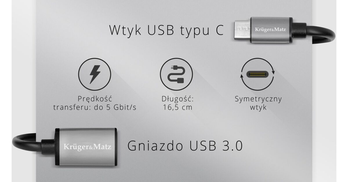 Adapter gniazdo USB 3.0 A - wtyk USB typu C OTG Kruger&Matz Basic opis