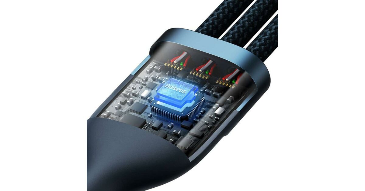 Kabel USB 3 w 1 Baseus Flash Series, USB-C + micro USB + Lightning, 100W, 1,2m, niebieski