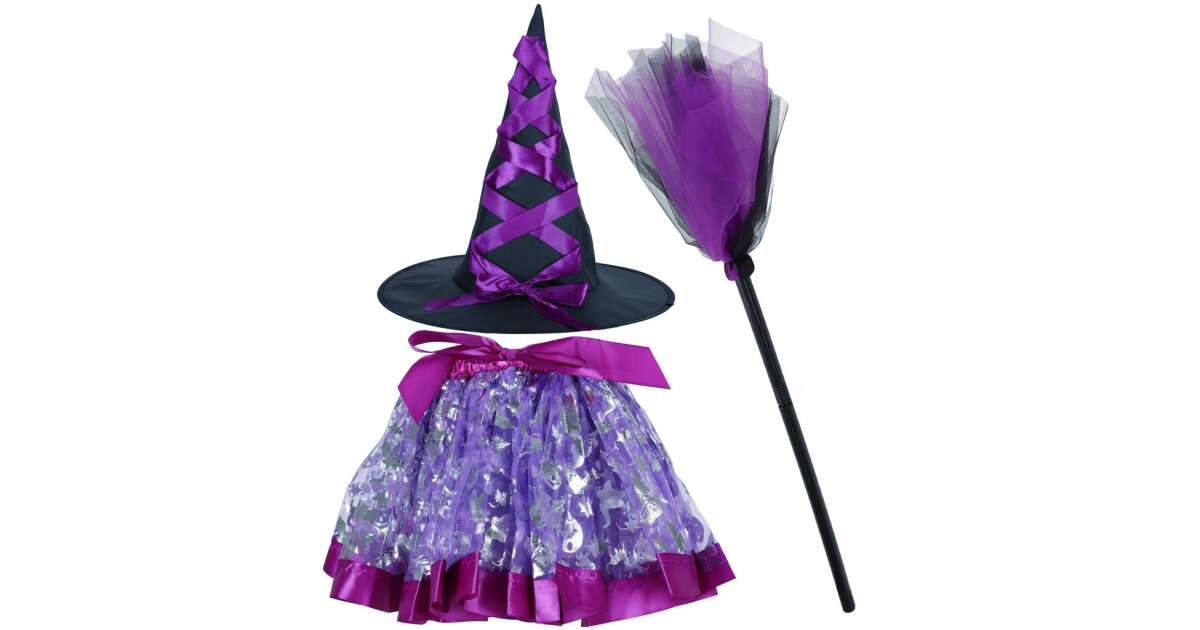 Ten 3-częściowy kostium czarownicy to idealny wybór na następny karnawałowy bal lub halloweenową imprezę! Zestaw składa się z fioletowej spódniczki, czarnego kapelusza i fioletowej miotły.