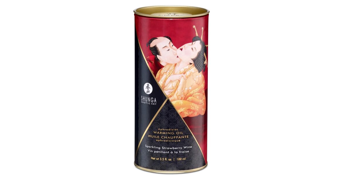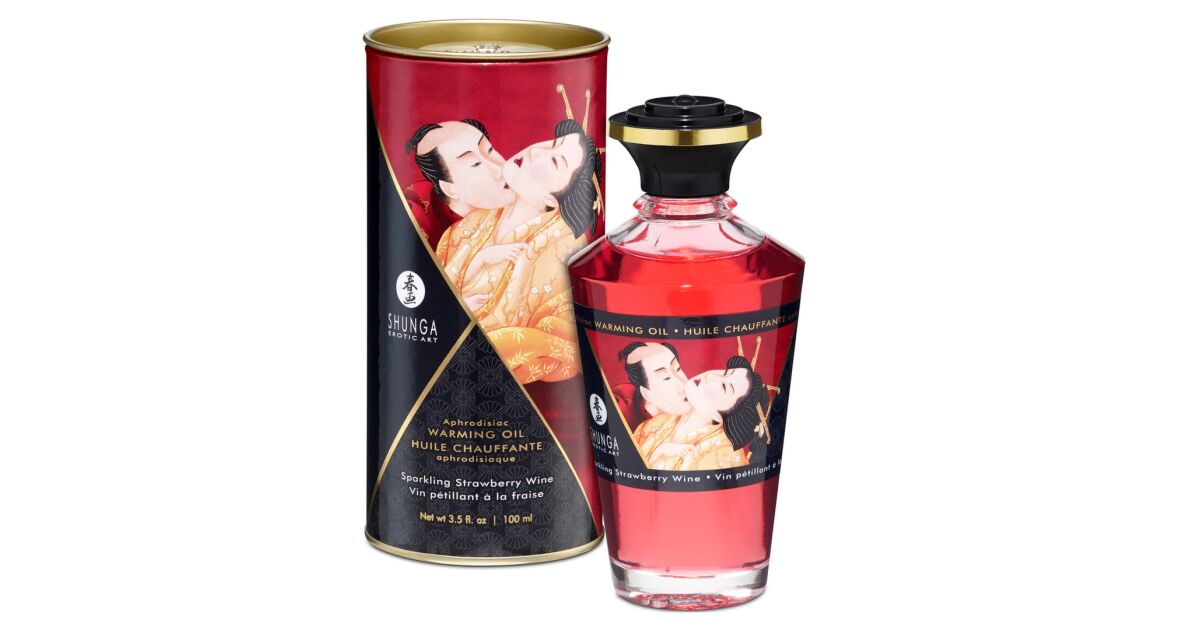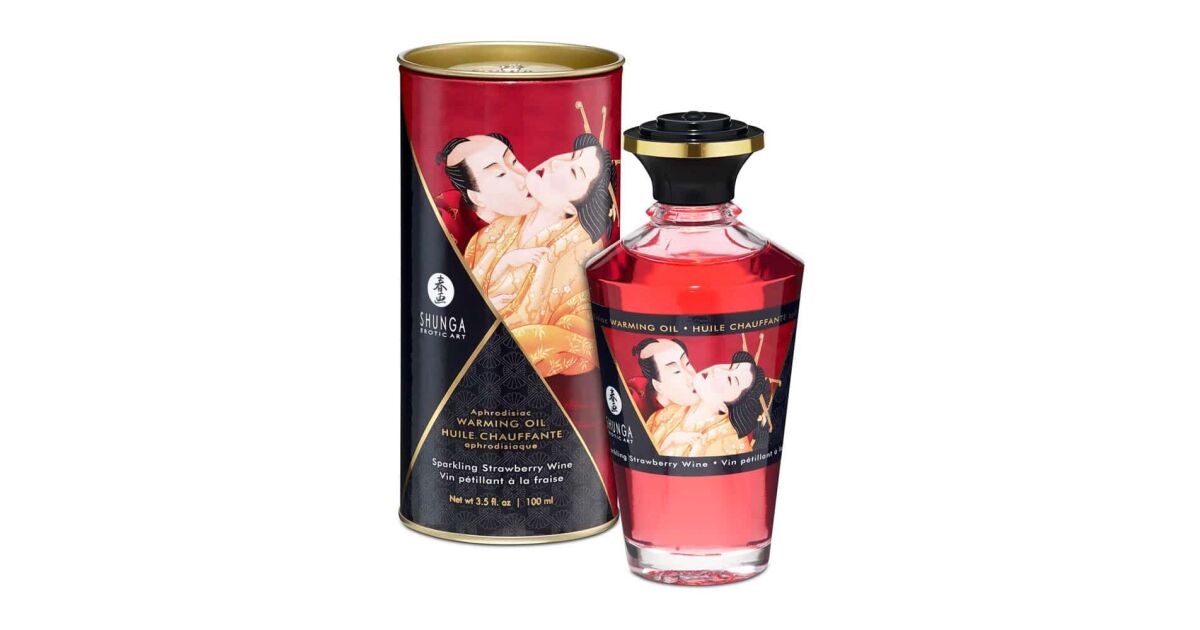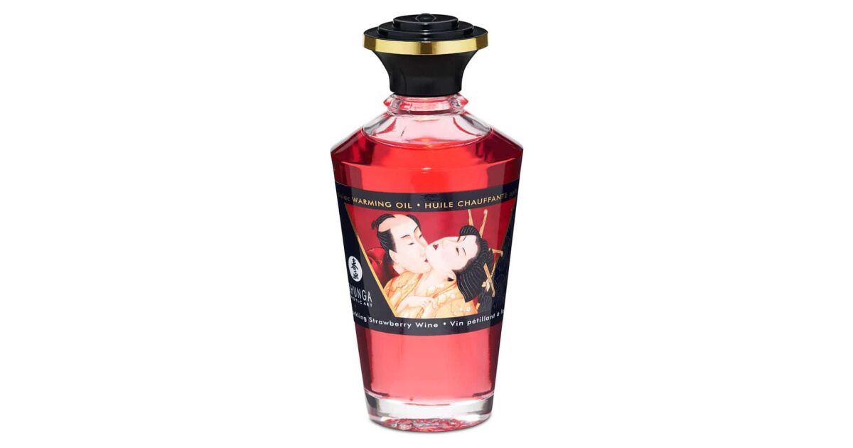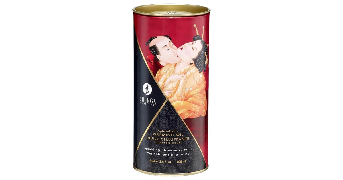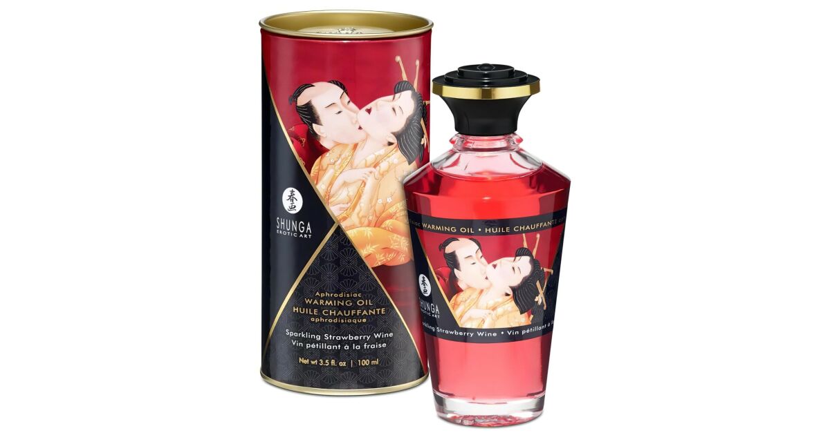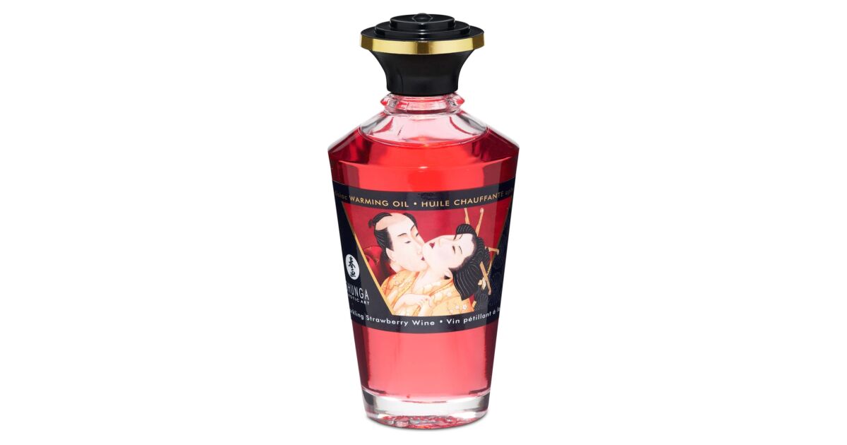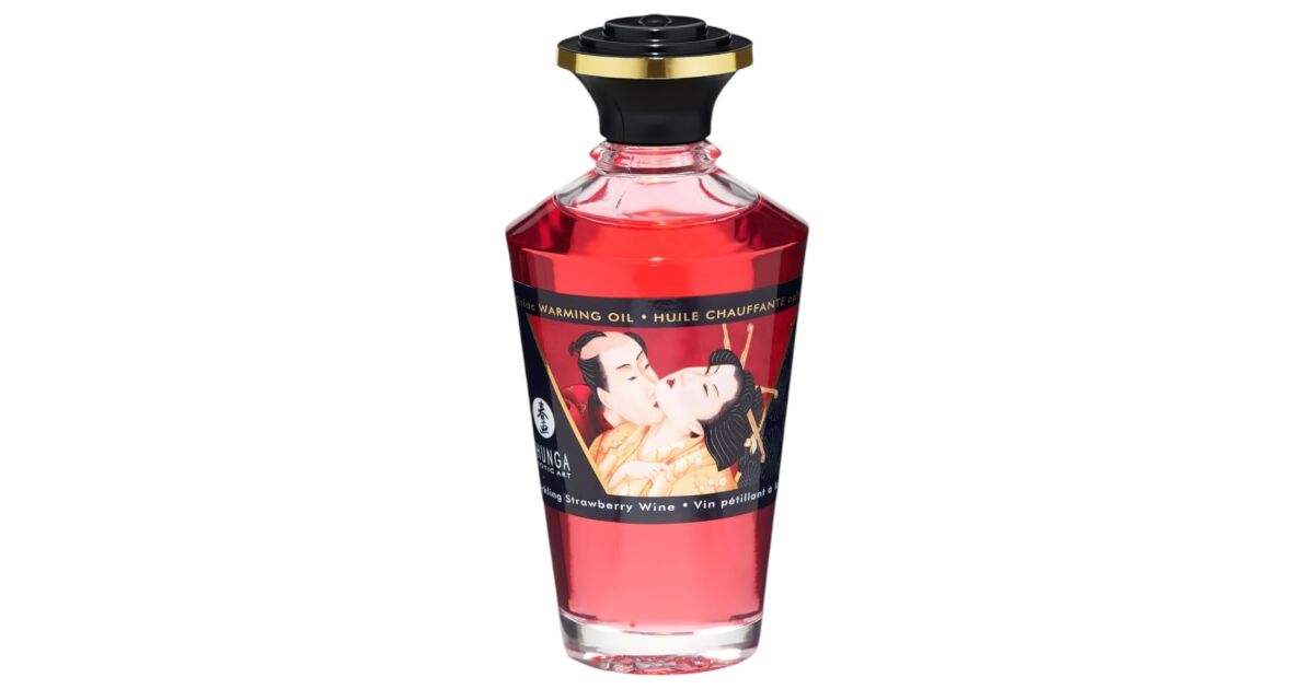 Shunga Aphrodisiac Warming Oil Sparkling Strawberry Wine 100ml - rozgrzewający olejek do masażu z aromatem truskawkowego wina