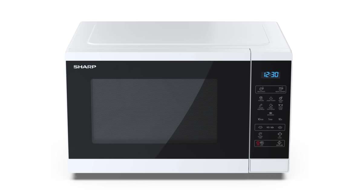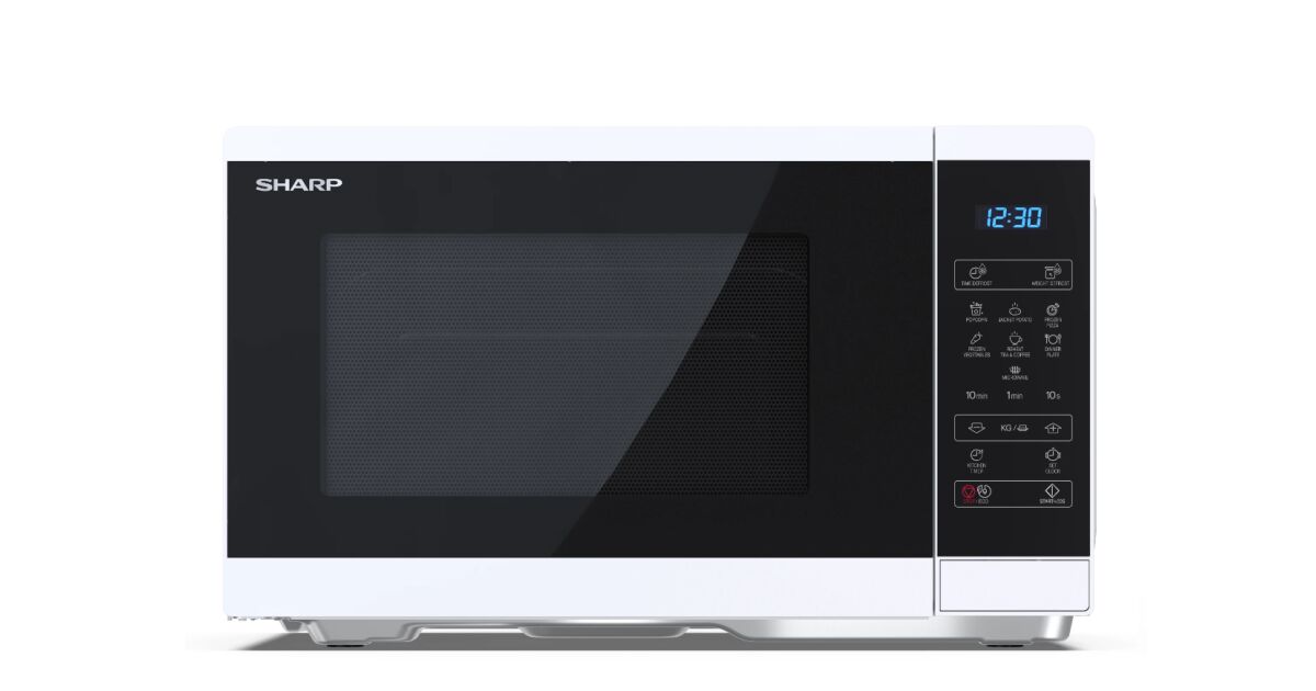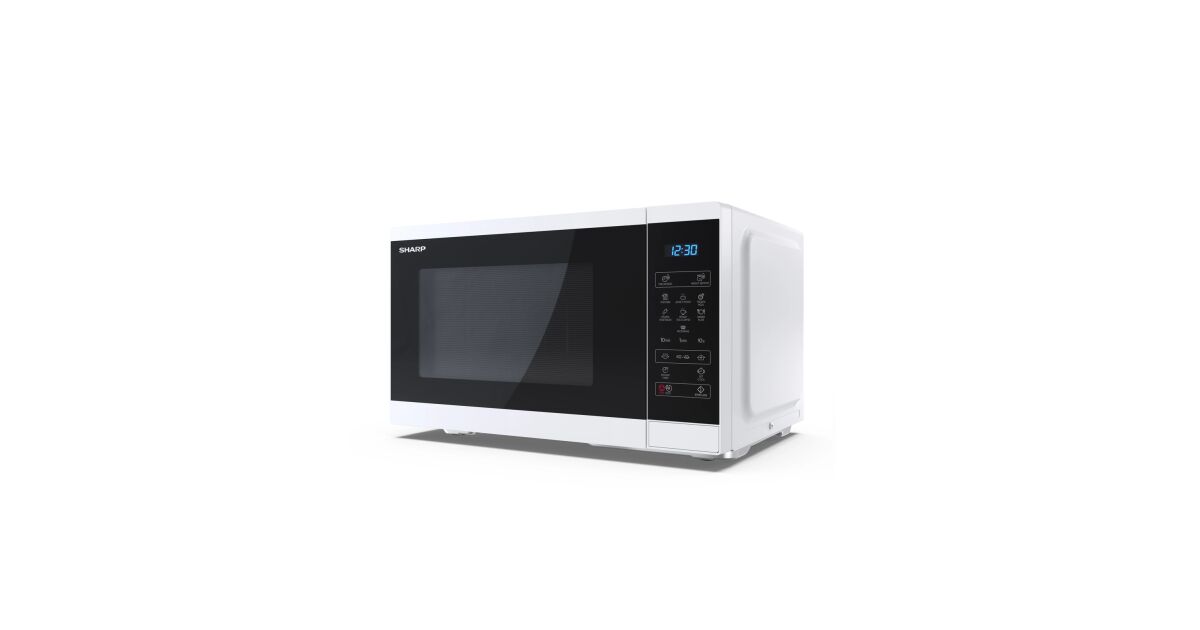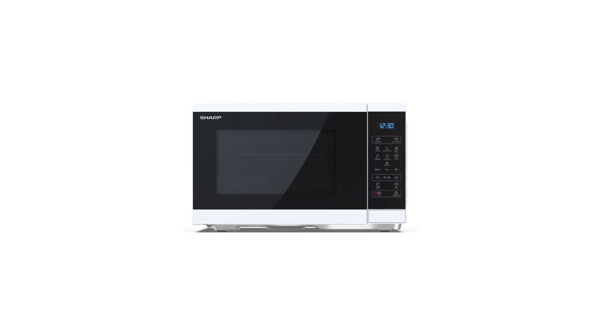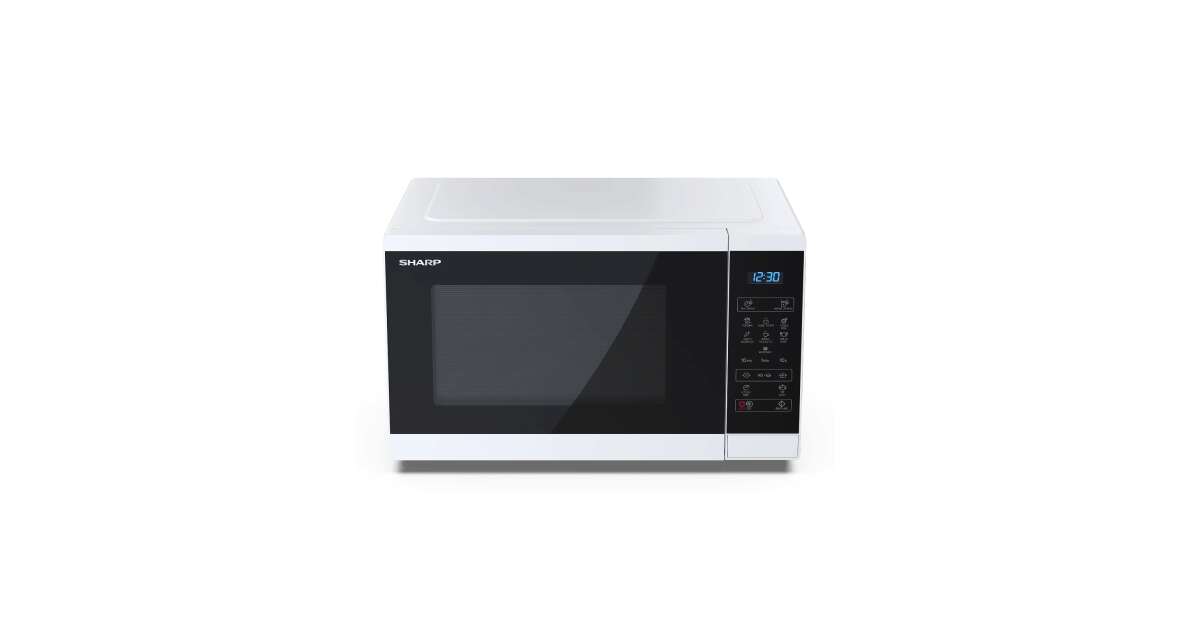 Sharp YC-MS252AE-W. Położenie urządzenia: Blat, Typ produktu: Mikrofalówka Solo, Pojemność: 25 l, Moc mikrofalówki: 900 W, Wbudowany wyświetlacz, Typ kontroli: Dotyk, Kolor produktu: Czarny, BiałyWyświetlacz elektroniczny: Tak;Rozmrażanie: Tak;Moc mikrofali: 900 W;Pojemność: 25 l;Podgrzewanie: Tak;Grill: Nie;Głębokość: 34.5 cm;Wysokość: 28 cm