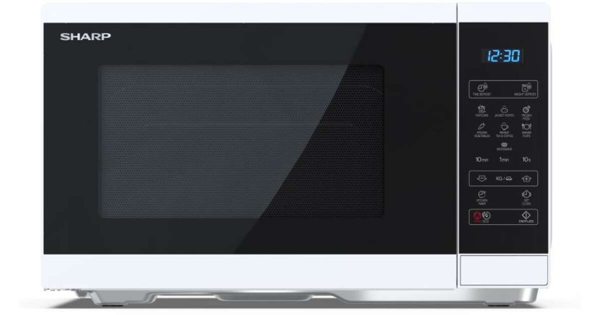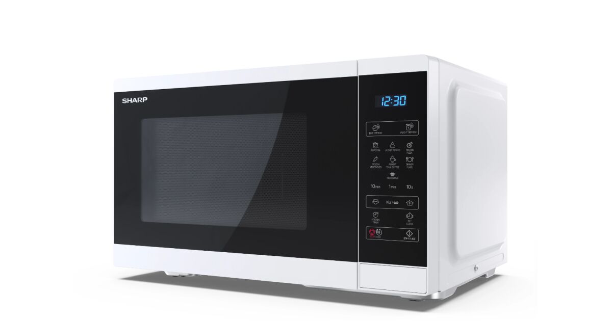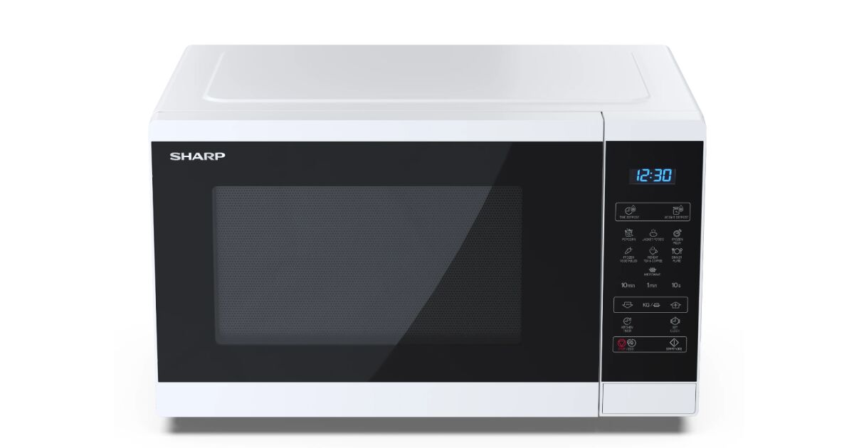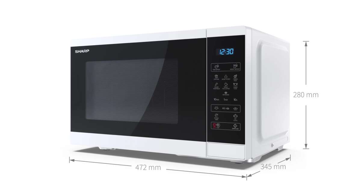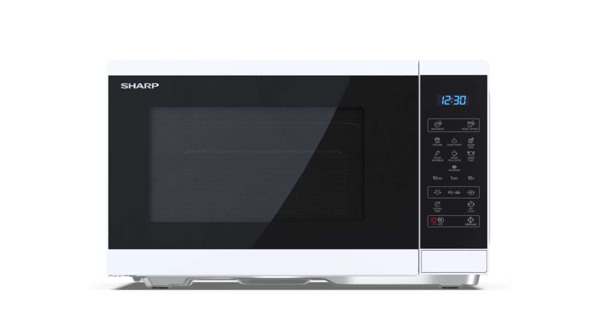 Sharp YC-MS252AE-W. Położenie urządzenia: Blat, Typ produktu: Mikrofalówka Solo, Pojemność: 25 l, Moc mikrofalówki: 900 W, Wbudowany wyświetlacz, Typ kontroli: Dotyk, Kolor produktu: Czarny, BiałyWyświetlacz elektroniczny: Tak;Rozmrażanie: Tak;Moc mikrofali: 900 W;Pojemność: 25 l;Podgrzewanie: Tak;Grill: Nie;Głębokość: 34.5 cm;Wysokość: 28 cm