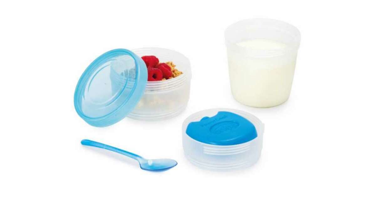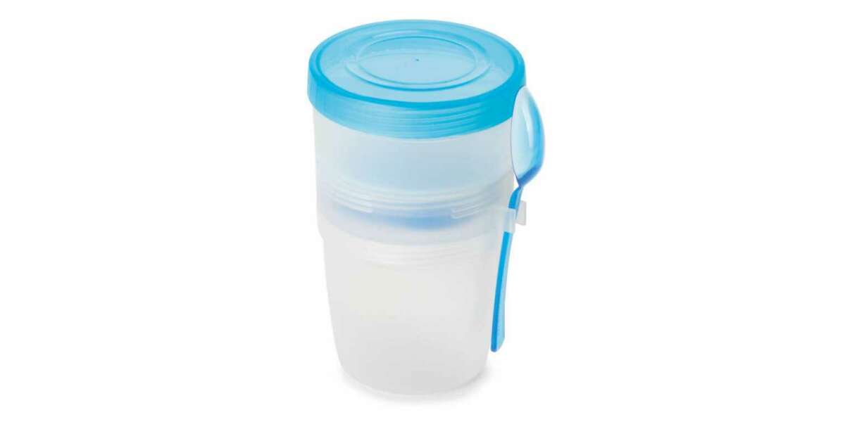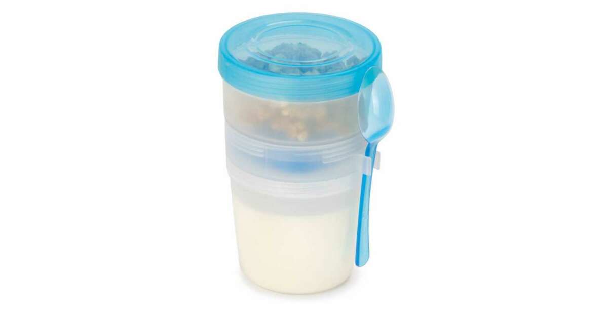 Praktyczny, dwukomorowy kubek na jogurt, w którym zmieszczą się Twoje ulubione jogurty, granola i owoce! Wbudowany akumulator lodu zadba o to, żeby każdy kęs był świeży i orzeźwiający. Możesz go wygodnie zabrać ze sobą wszędzie! 🚶♀️