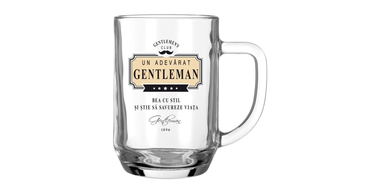 Kufel do piwa Gentleman, 500 ml, zabawny napis „pij z klasą i wiedz, jak cieszyć się życiem”