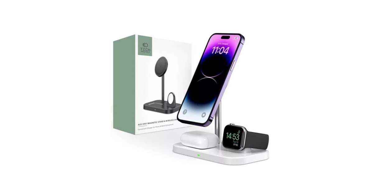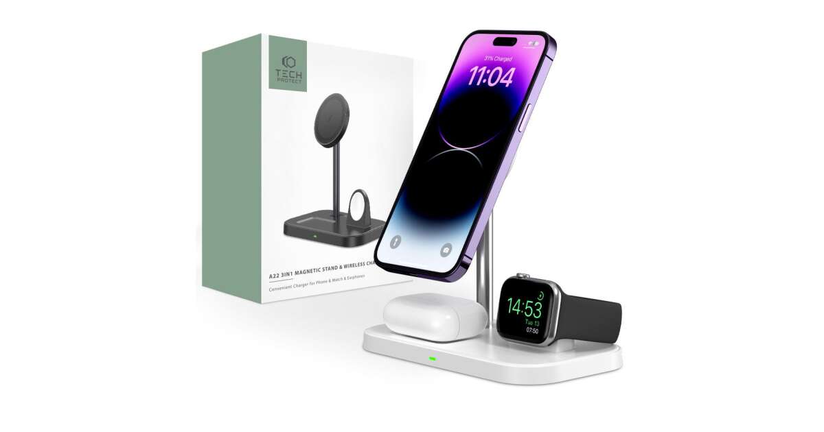 Bezprzewodowa ładowarka 3-w-1 Tech-Protect A22: Naładuj swój telefon, smartwatch i słuchawki jednocześnie! 📱⌚️🎧