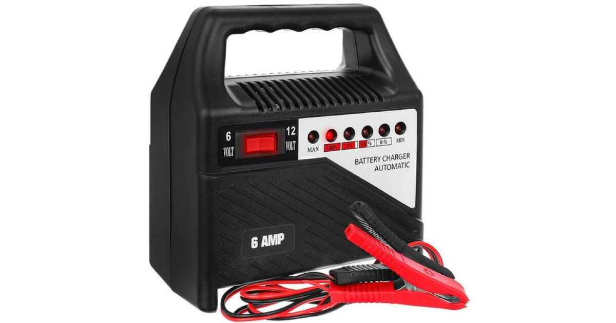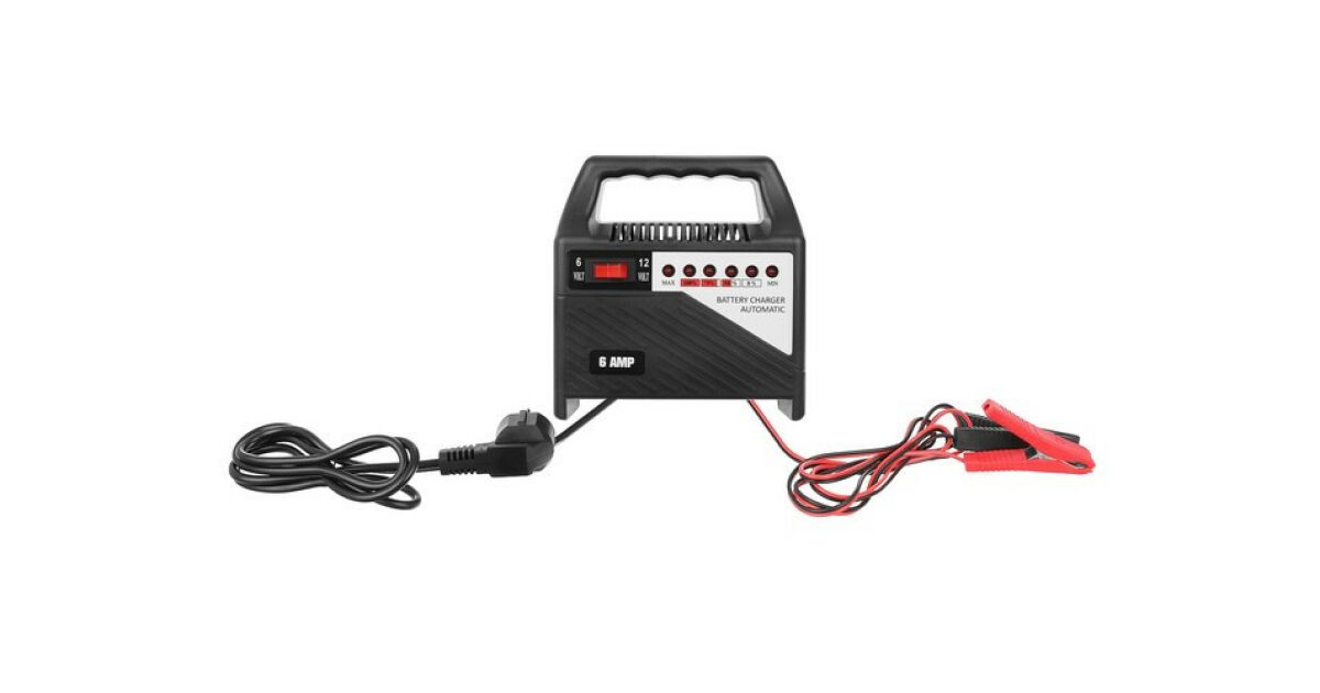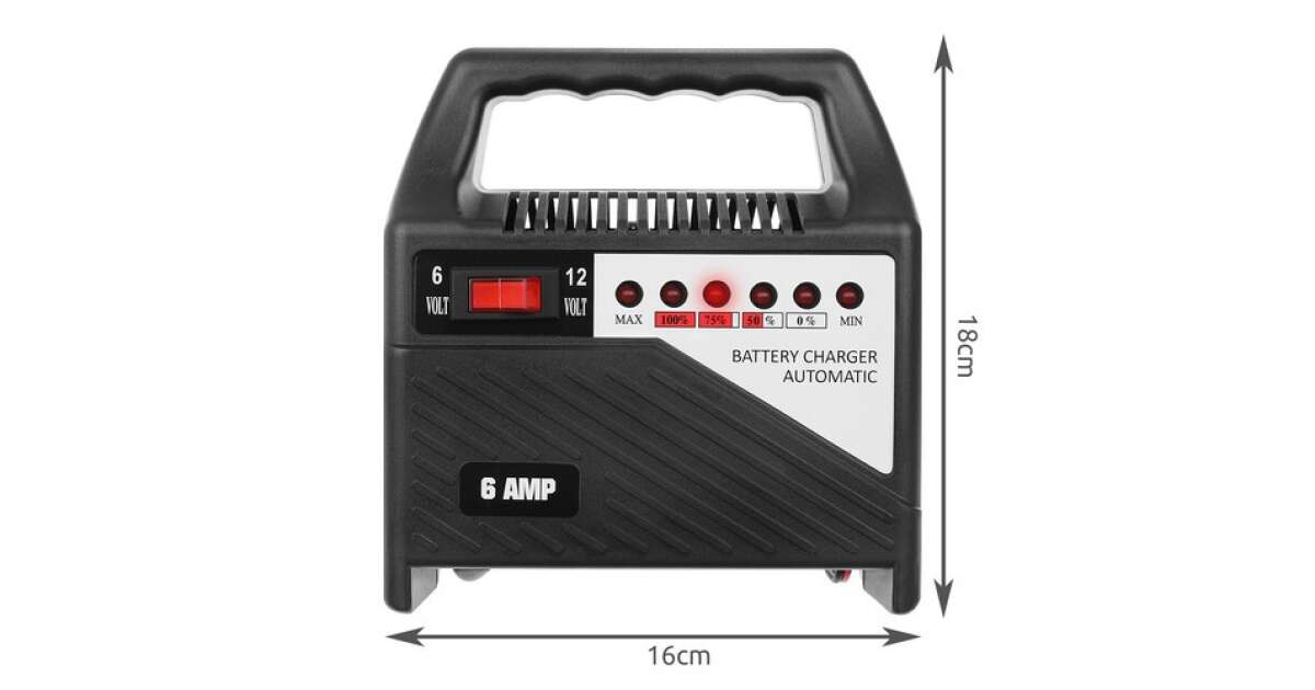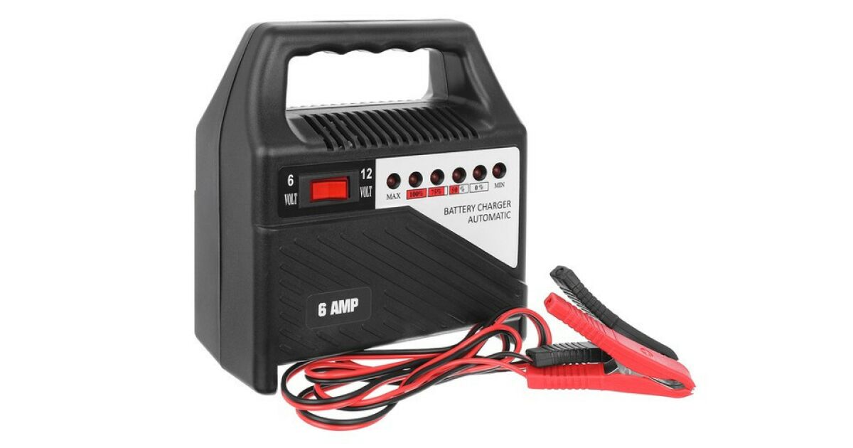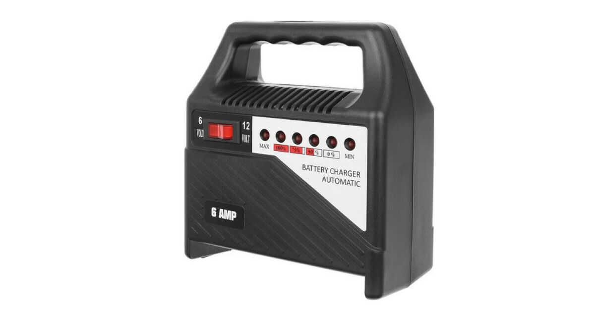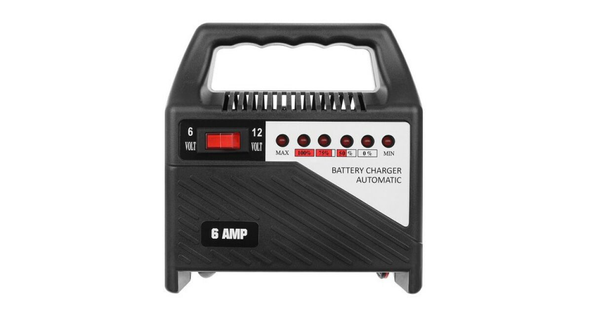 -Automatyczna ładowarka do akumulatorów 12V i 6V, do akumulatorów samochodowych, motocyklowych, łodziowych ze wskaźnikiem naładowania, 6 amperów opis