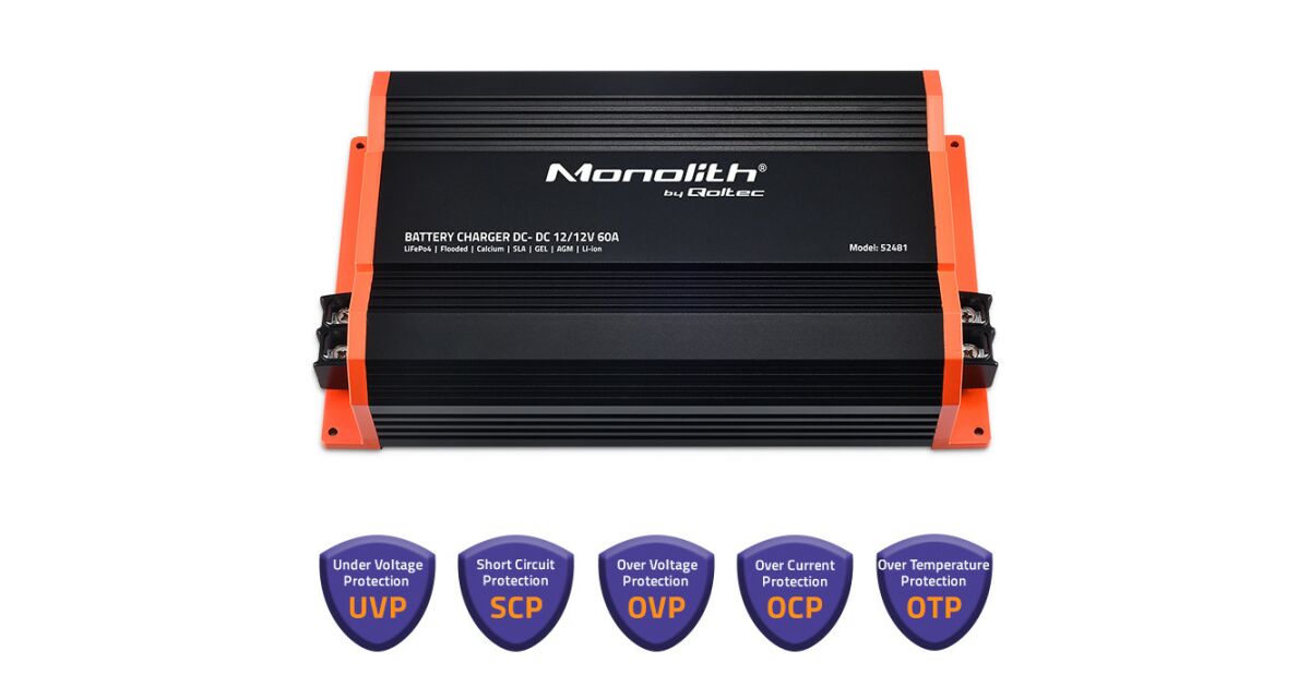 Qoltec Ładowarka Monolith DC-DC do dodatkowego akumulatora LiFePO4 AGM GEL 12V - 12V | 60A | 720W opis