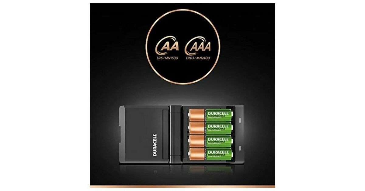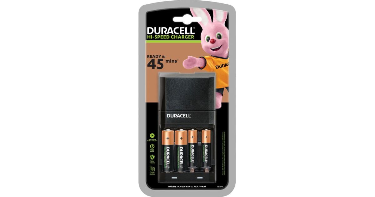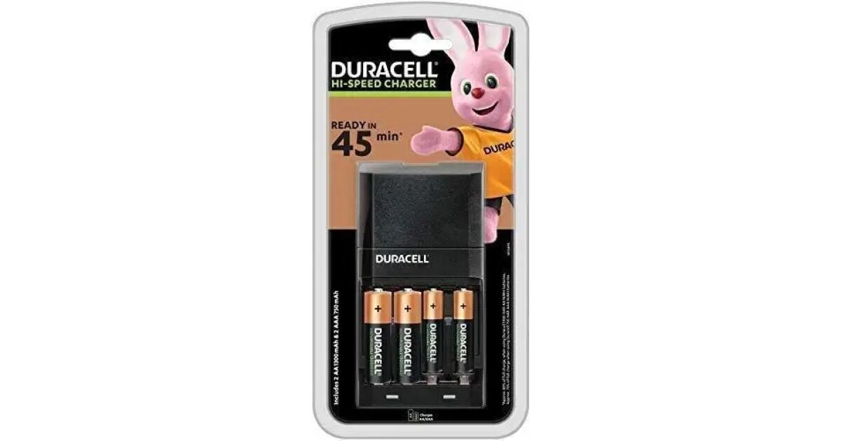Ładowarka Duracell Hi-Speed z 4 bateriami AA/AAA - Szybkie i bezpieczne ładowanie ⚡