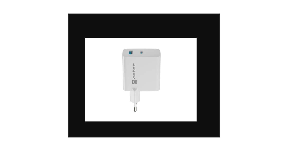 Adapter Natec USB Charger, Ribera Gan, 1X USB-A + 1X USB-C, 45W, biały opis
