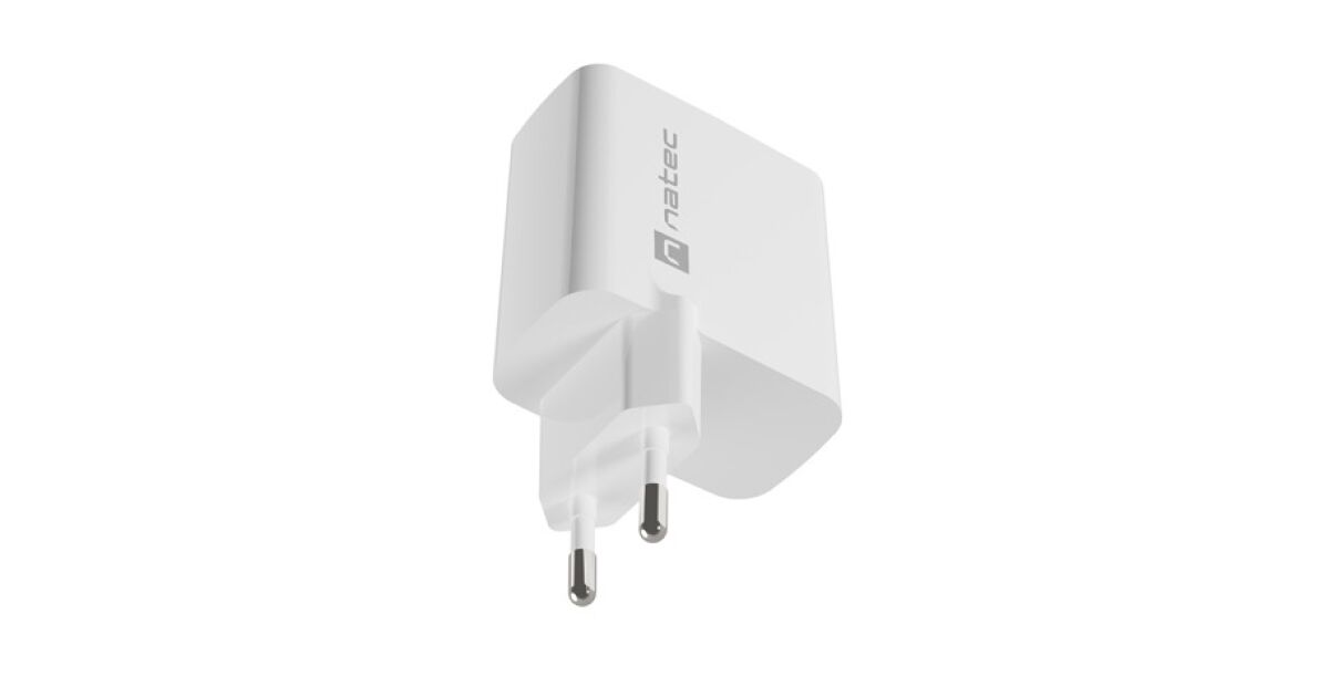 Adapter Natec USB Charger, Ribera Gan, 1X USB-A + 1X USB-C, 45W, biały