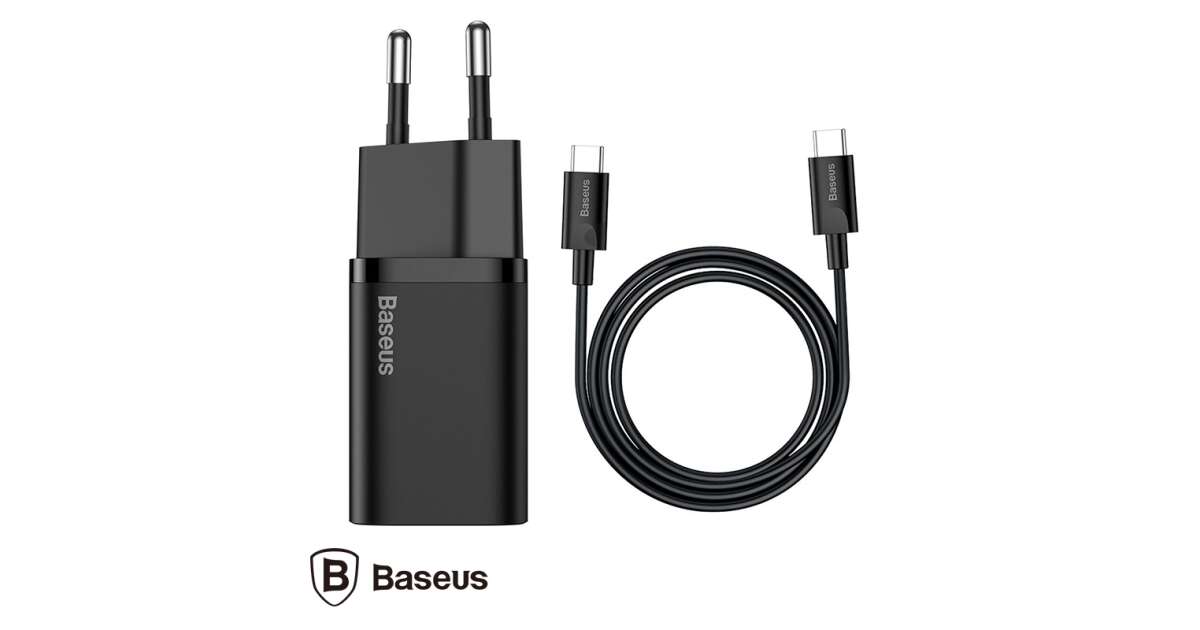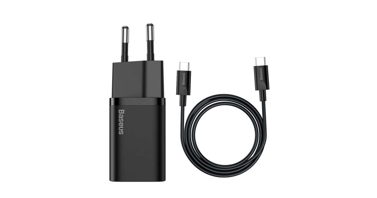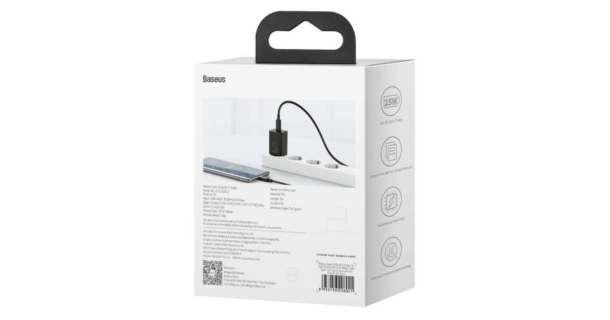 Ładowarka+kabel Baseus Super Si Quick, 1C, 25W, USB-C na USB-C, 1m - Czarny