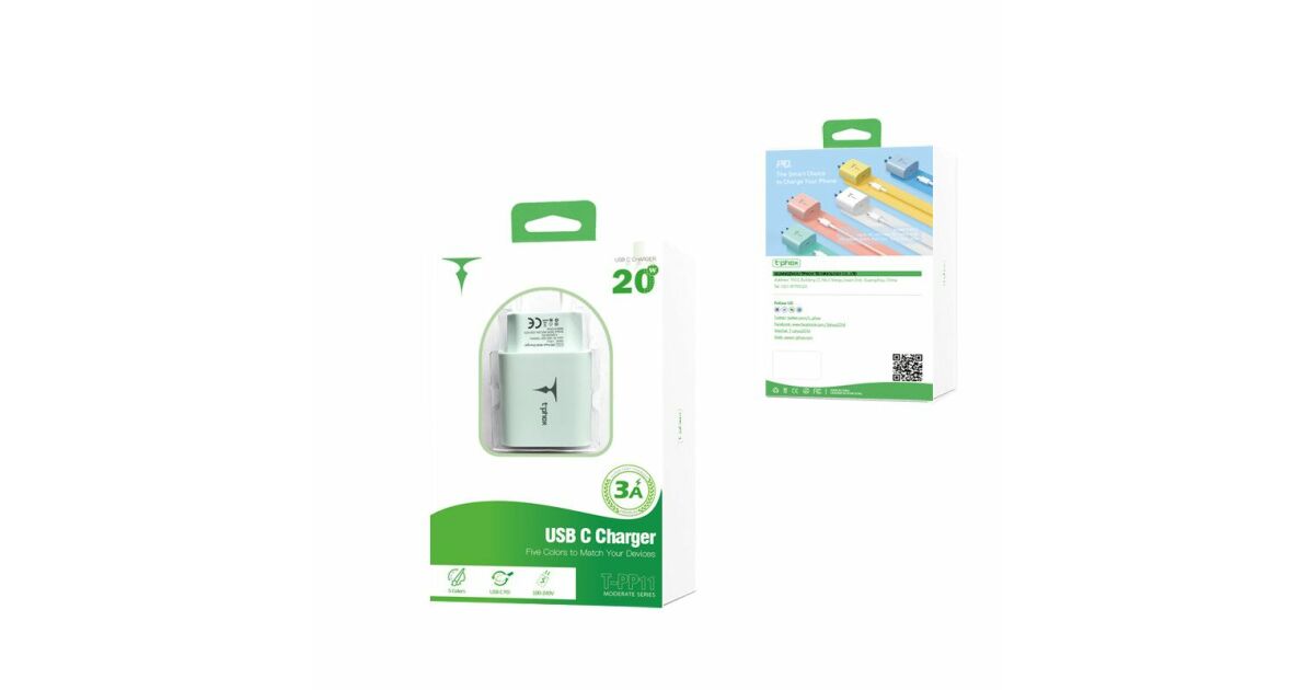 ŁAD SIEC T-PHOX MODERATE SERIES T-PP11 20W + KABEL USB-C/USB-C 60W GREEN
