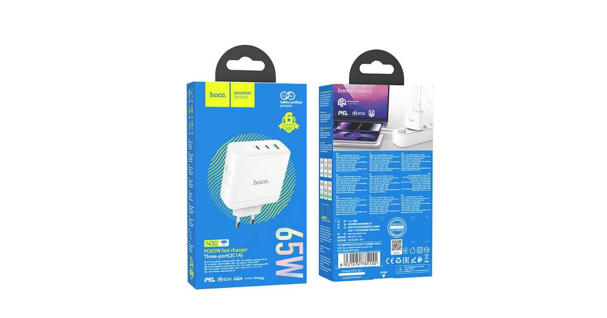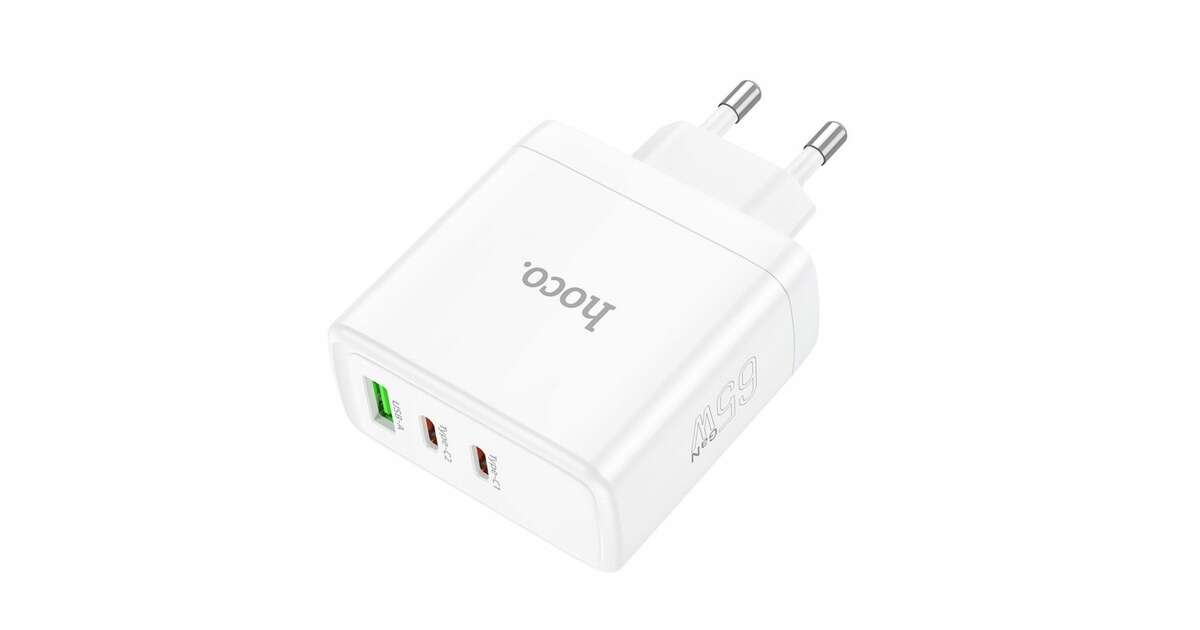 Ładowarka Hoco HOCO ładowarka sieciowa 2 x Typ C + USB A QC PD 65W GaN N30 biała