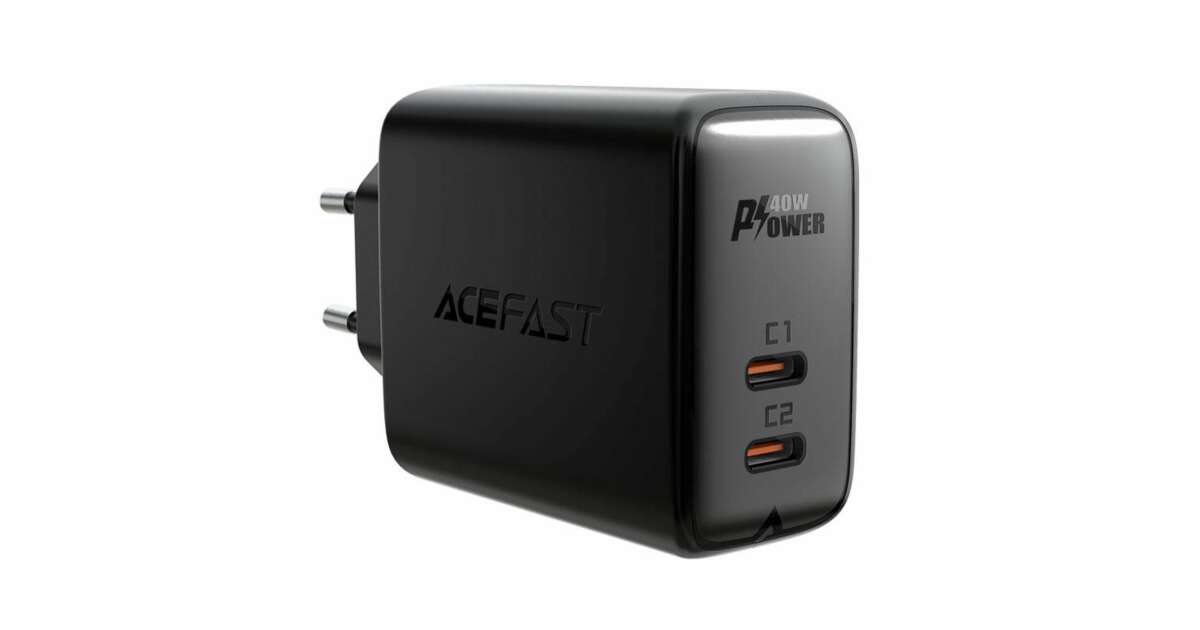 Ładowarka sieciowa Acefast A9, 2xUSB-C, 40W, PPS, PD, QC 3.0, AFC, FCP, czarna