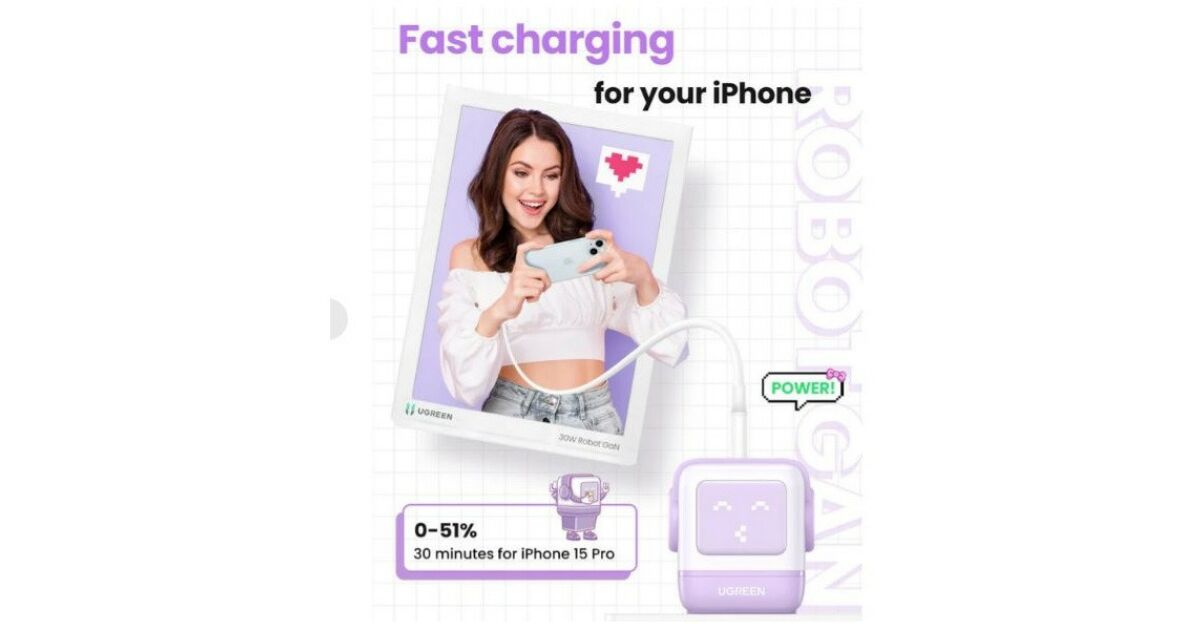 Ładowarka sieciowa Ugreen Nexode RG (Robot GaN), 2x USB + USB-C, 65 W (fioletowa). Cenisz sobie nie tylko funkcjonalność, ale także wyjątkowy design posiadanych urządzeń? Ładowarka Ugreen Nexode RG w formie uroczego małego robota z pewnością przypadnie Ci do gustu! Dzięki 3 dostępnym portom umożliwia ładowanie 3 urządzeń jednocześnie, a dzięki mocy wyjściowej do 65 W nie będziesz musiał długo czekać, aż Twój tablet lub telefon będzie gotowy do użycia. Produkt jest również wyposażony w mały wyświetlacz LED, który informuje o jego działaniu.Ładowanie 3 urządzeń jednocześnieChcesz naładować więcej urządzeń lub podzielić się ładowarką z przyjacielem? Nie ma problemu - dzięki Ugreen nikt nie musi czekać na swoją kolej. Model Nexode RG oferuje 3 porty - 1x USB-A i 2x USB-C. Możesz więc podłączyć do 3 urządzeń jednocześnie! Imponująca moc Ładowarka ma aż 65 W mocy, co pozwala na ładowanie urządzeń w bardzo krótkim czasie. Korzysta również z technologii GaN, która pozwoliła zwiększyć wydajność, zmniejszyć straty energii i poprawić rozpraszanie ciepła, dzięki czemu jest bezpieczniejsza w użyciu. Dopracowana w każdym szczególe Dzięki kompaktowej konstrukcji ładowarkę można zabrać ze sobą niemal wszędzie. Z łatwością zmieści się w torbie lub plecaku! Dodatkowo, uroczy design w kształcie robota z pewnością przypadnie do gustu wielu użytkownikom. Produkt posiada również zdejmowane magnetyczne nóżki, które pozwalają bezpiecznie przymocować go do wybranych metalowych powierzchni, jednocześnie chroniąc złącze przed uszkodzeniem. Wyświetlacz LED Ładowarka posiada wbudowany wyświetlacz, który naśladuje twarz i mimikę robota, jednocześnie dostarczając informacji o jego stanie. Oznacza to, że wystarczy szybki rzut oka, aby dowiedzieć się na przykład, czy trwa szybkie lub długotrwałe ładowanie. Szeroka kompatybilność Zapomnij o problemach z kompatybilnością. Dzięki ładowarce Ugreen Nexode RG możesz z łatwością naładować między innymi smartfon, tablet, słuchawki bezprzewodowe lub przenośną konsolę do gier. Nie musisz się ograniczać! ProducentUgreenModel35291< th>KolorfioletowyDostępne porty2x USB-C, 1x USB-AWejście1.8 A max.Wyjście USB-C165 W max. td>Wyjście USB-C2max. 30 W.Wyjście USB-A< td>22.5 WTotalna moc wyjściowa65 W max.