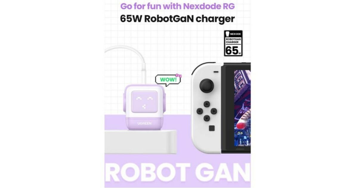 Ładowarka sieciowa Ugreen Nexode RG (Robot GaN), 2x USB + USB-C, 65 W (fioletowa)