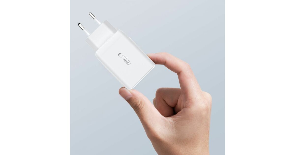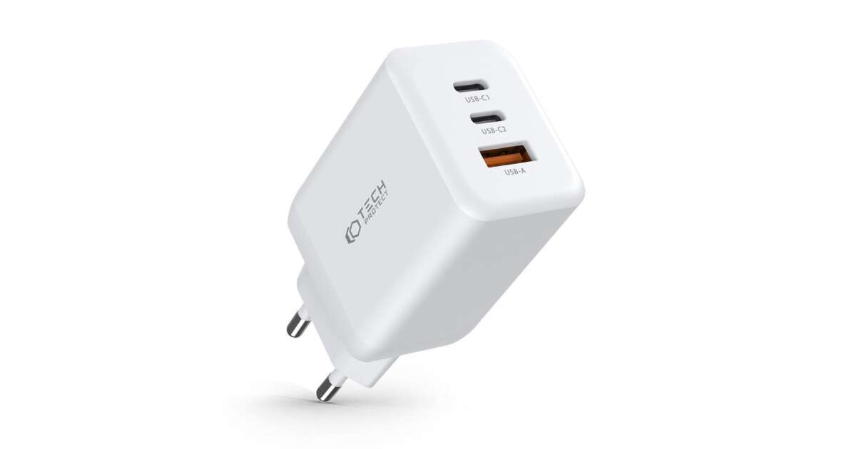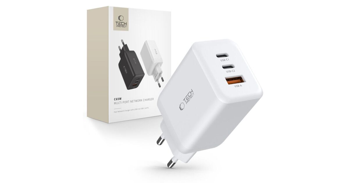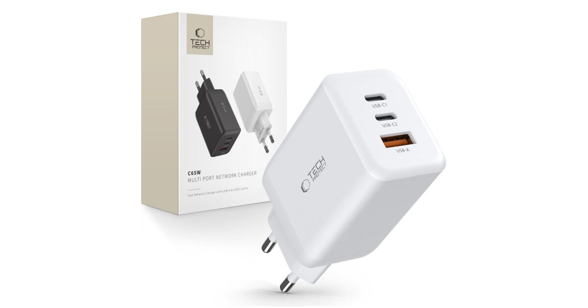 Ładowarka USB Tech-Protect 65W z trzema portami - Biała: Szybkie i bezpieczne ładowanie ⚡