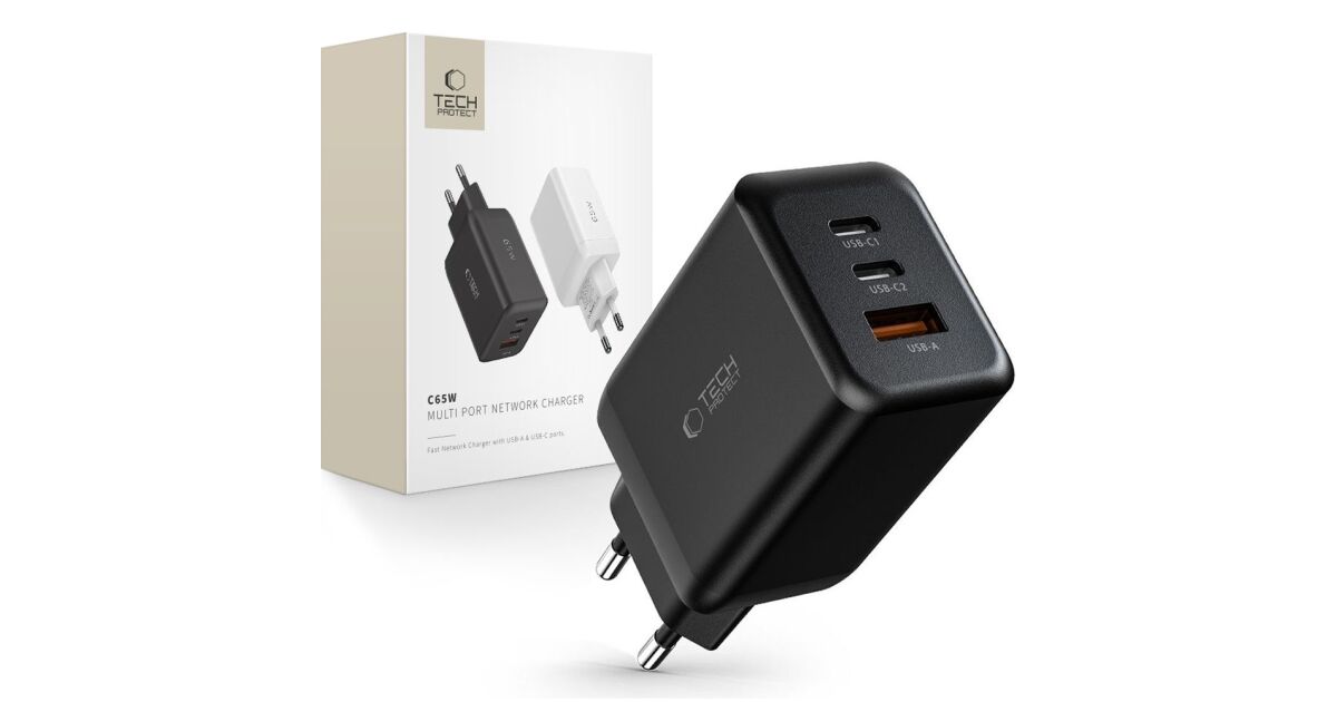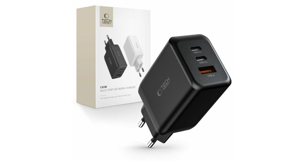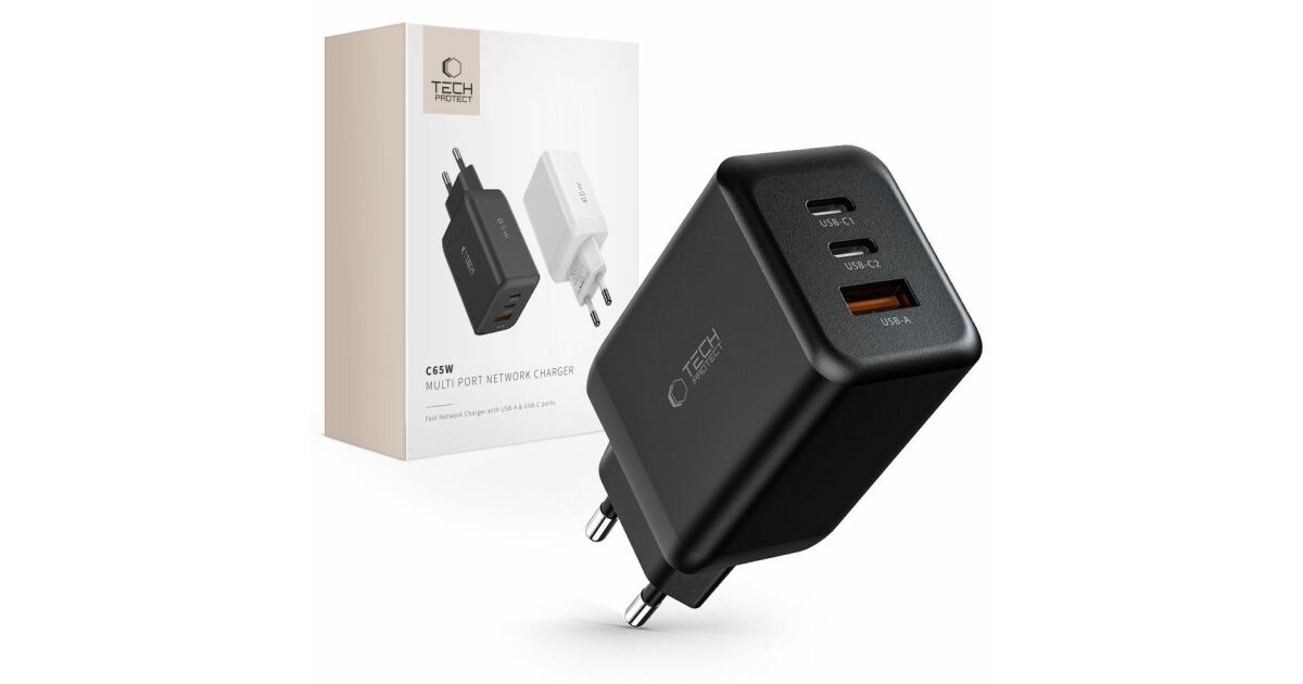 Tech-Protect C65W Trzyportowa Szybka Ładowarka: Naładuj 3 urządzenia naraz! 🚀