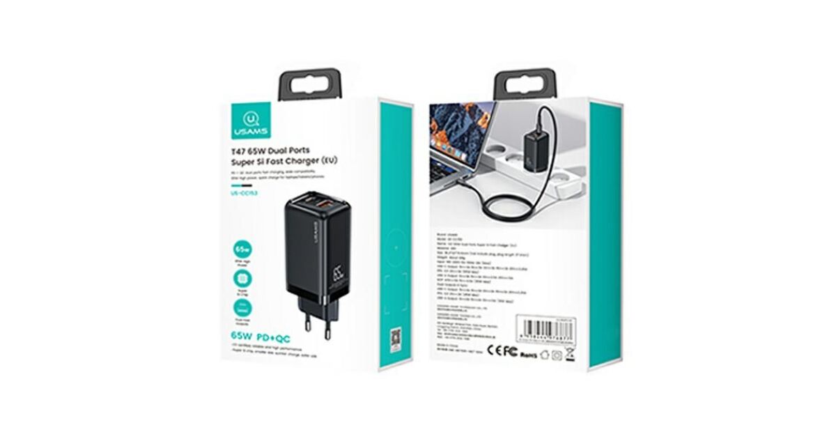 USAMS Ład. siec. 1xUSB-C+1xUSB T47 65W(only head) PD Fast Charging Super Si czarny/black CC153TC01 (US-CC153) recenzje