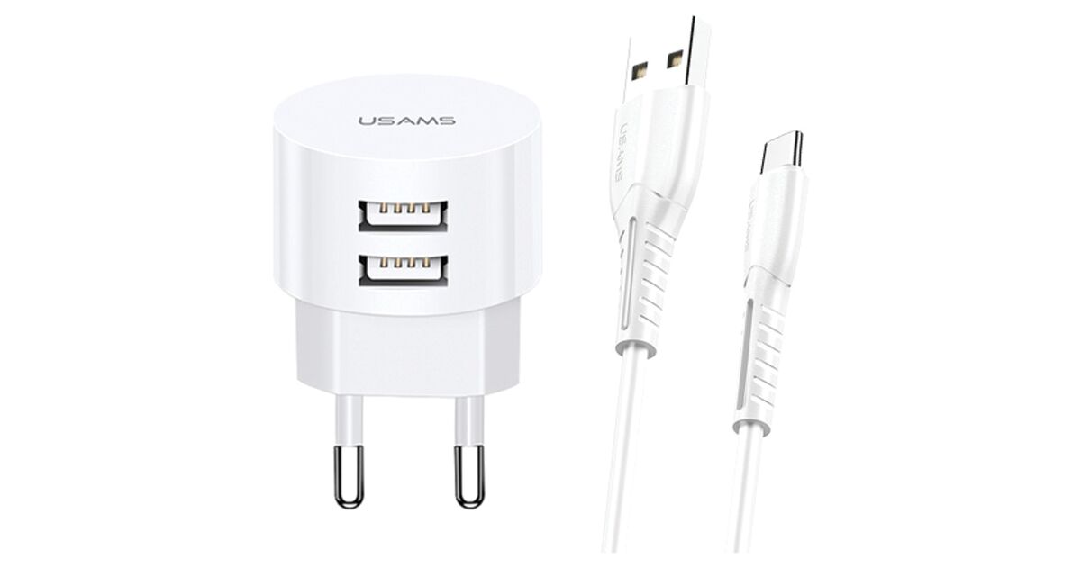 USAMS Ład. siec. 2xUSB T20 2,1A USB-Cbiały/white round Fast Charging XTXLOGT18TC05