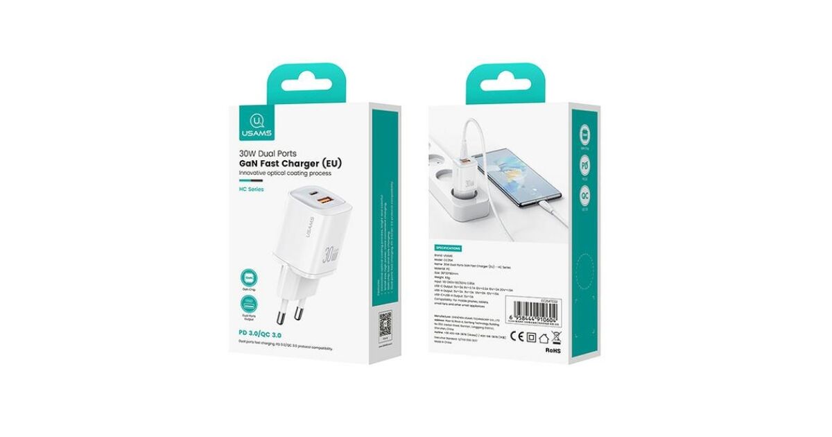 USAMS Ład. siec. CC254 30W GaNUSB-C/USB-A Fast Charging HC Series fioletowy/purple CC254TC03 opis