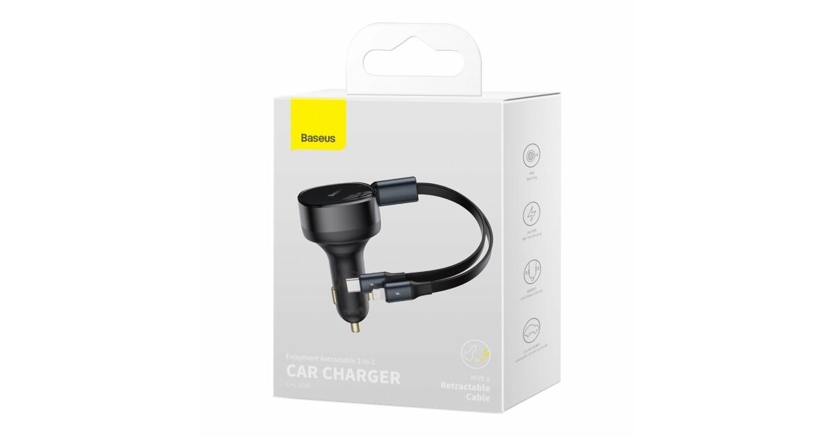 Ta samochodowa ładowarka to idealny wybór, jeśli chcesz szybko i wygodnie ładować swoje urządzenia w podróży. Baseus Enjoyment o mocy 30W i z dwoma kablami (USB-C i Lightning) pozwala na jednoczesne ładowanie dwóch urządzeń.