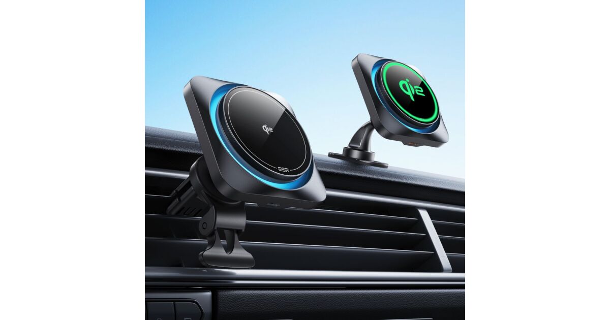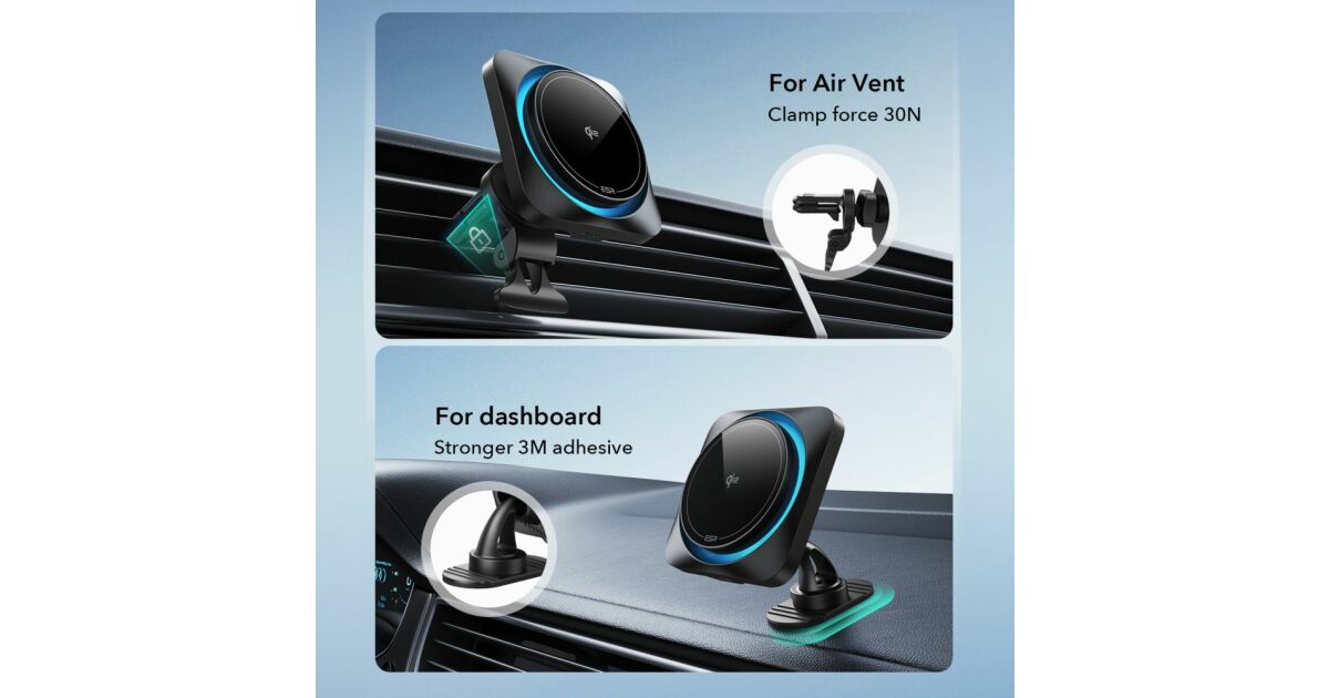 ESR HALOLOCK CRYOBOOST MAGNETIC MAGSAFE DASHBOARD & VENT CAR MOUNT WIRELESS CHARGER QI2 15W FROSTED ONYX