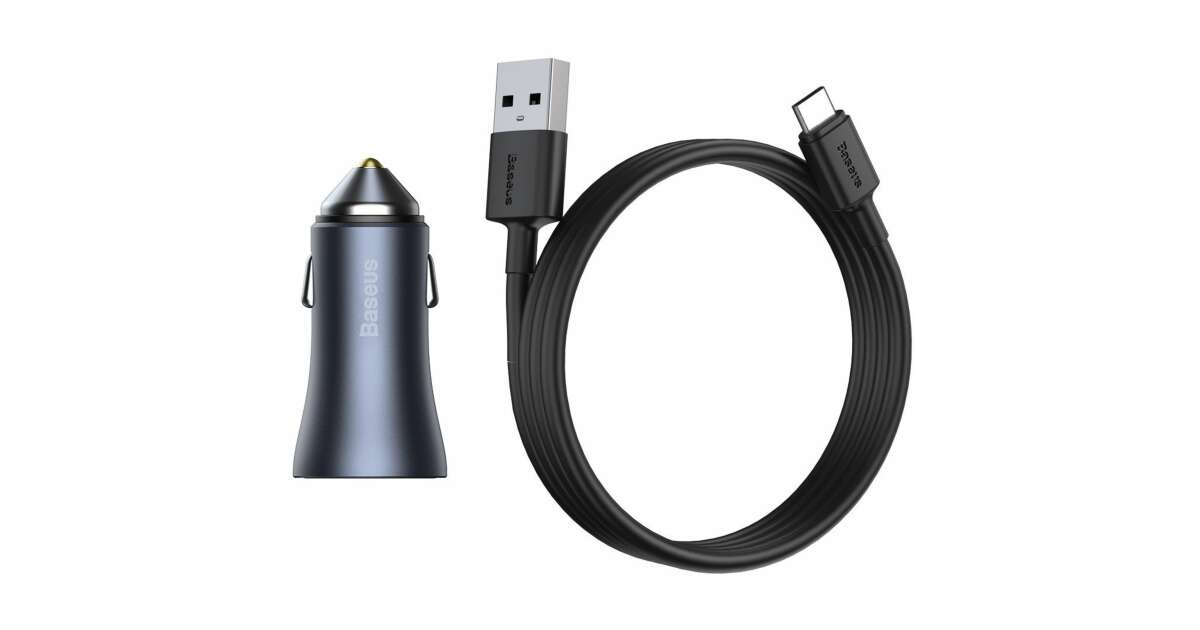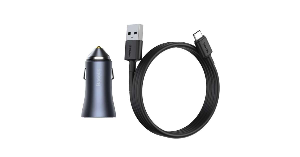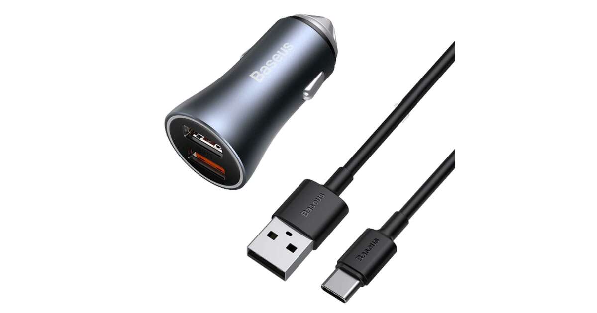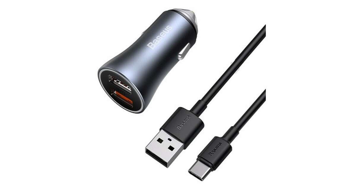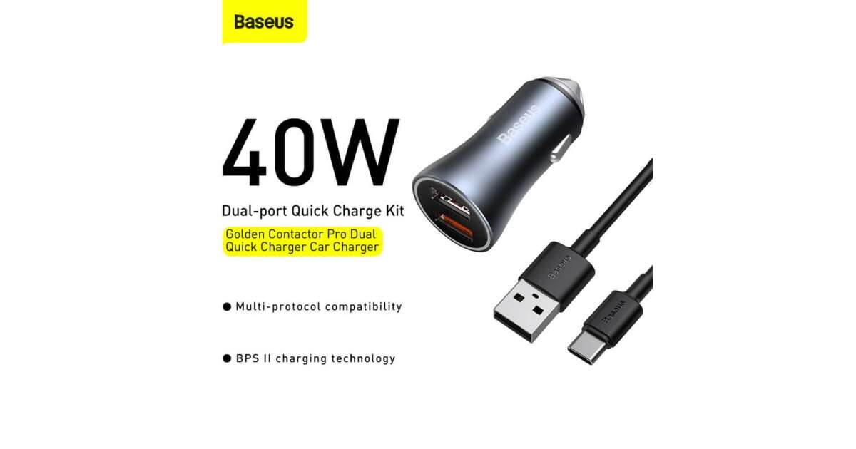 -Ładowarka samochodowa Baseus Golden Contactor Pro, 2x USB, QC, SCP, 40W + kabel USB na USB-C (1m) opis