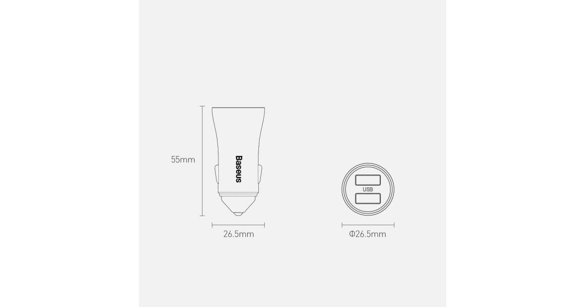 Ta samochodowa ładowarka Baseus to idealny wybór, jeśli chcesz szybko ładować dwa urządzenia jednocześnie w podróży. Dzięki dwóm portom USB możesz jednocześnie ładować dwa telefony, tablety lub inne urządzenia, bez żadnych kompromisów. Nowoczesny design i wysokiej jakości materiały gwarantują trwałość i estetyczny wygląd w Twoim samochodzie.